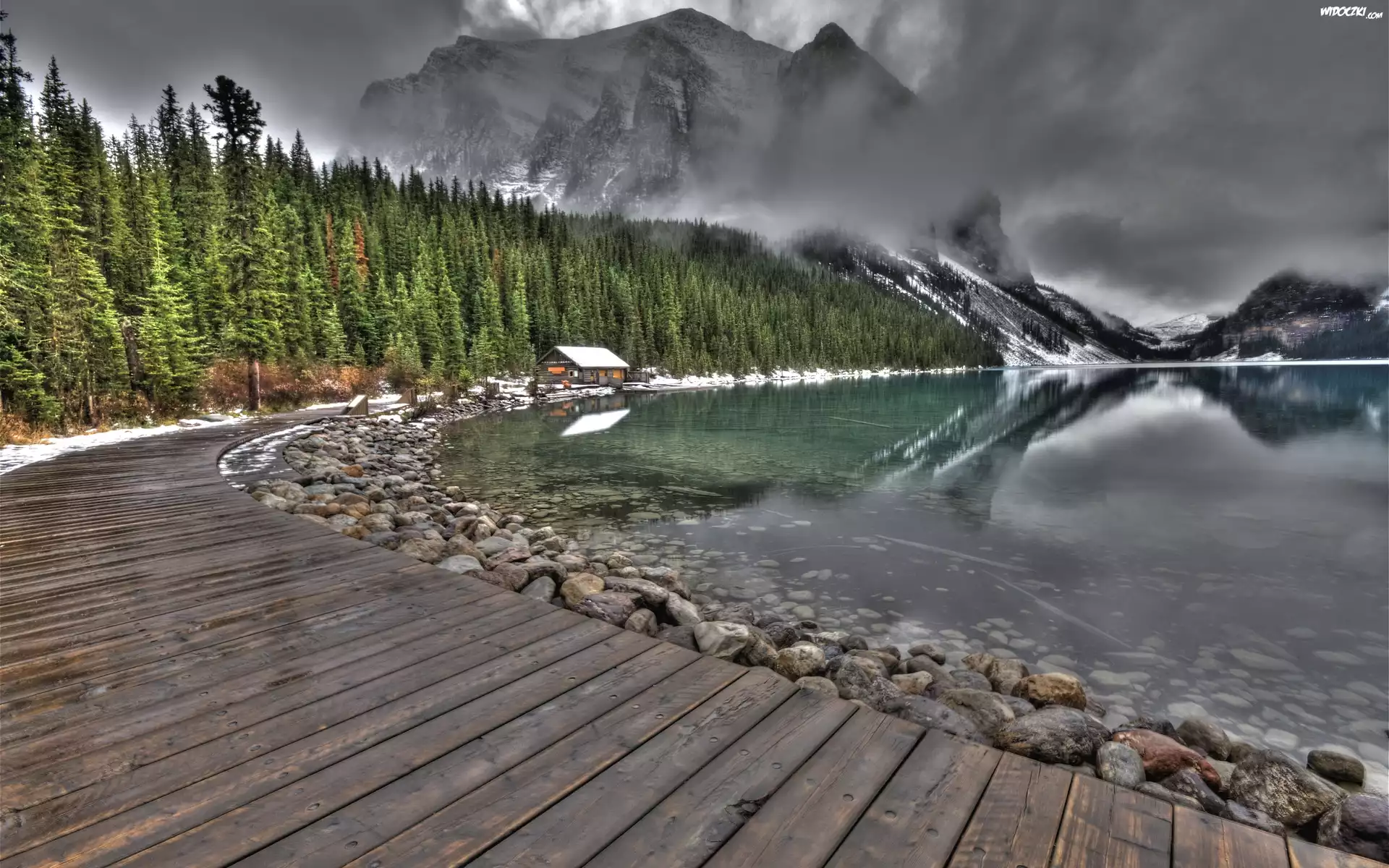 Zdjęcia, Jezioro, Góry, Las, Chmury