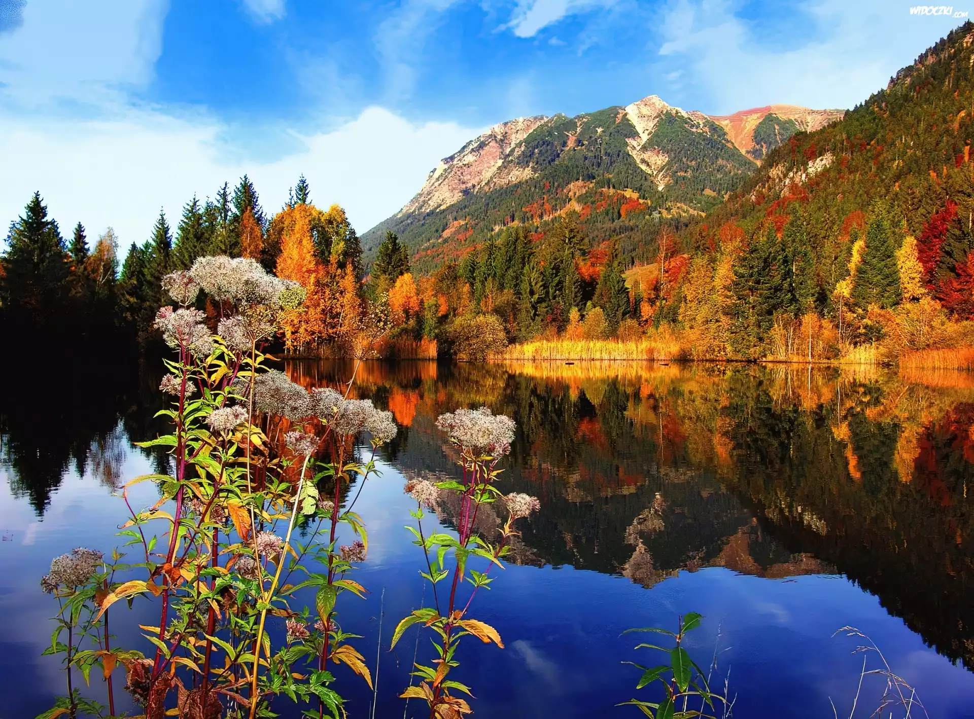 Jezioro, Góry, Las, Jesień