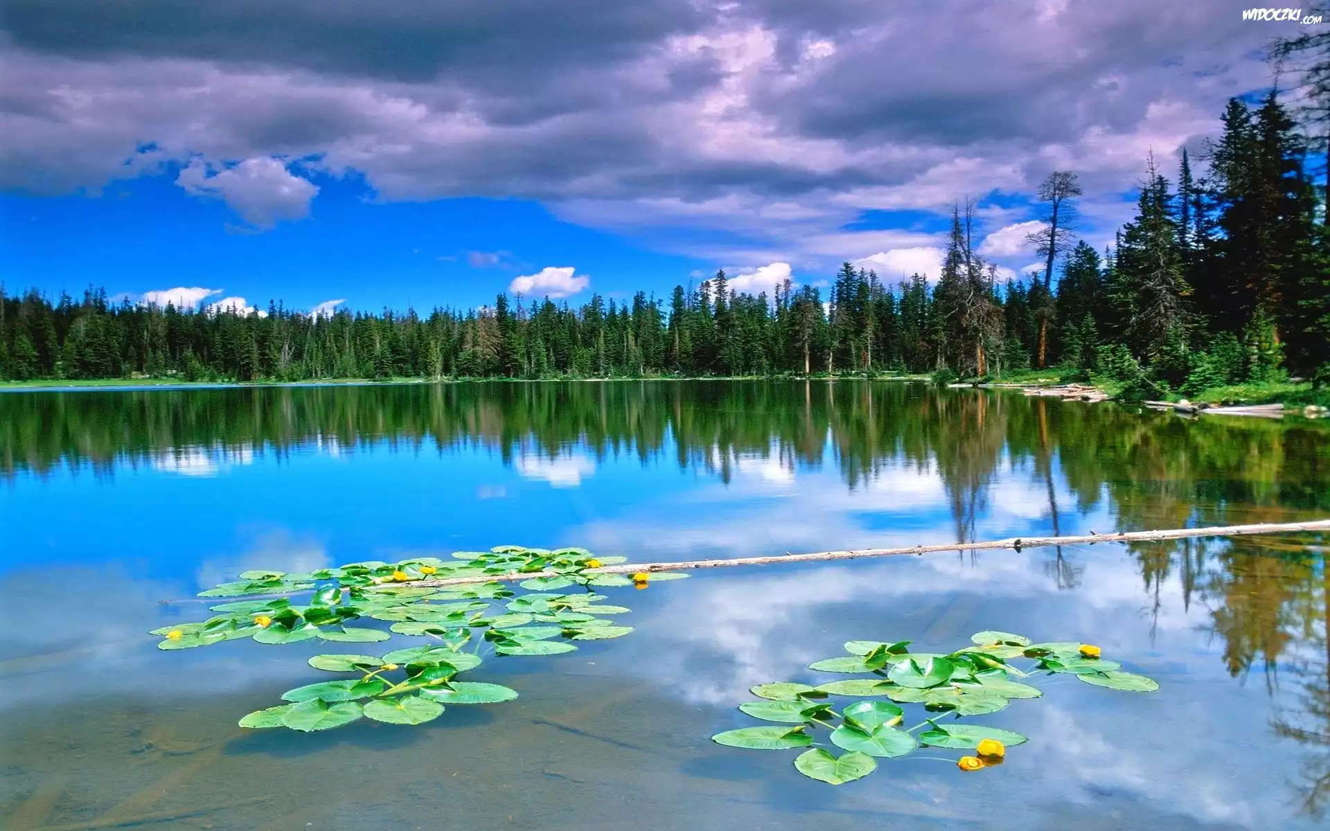 Zdjęcia, Jezioro, Grążel, Żółty, Las, Drzewa