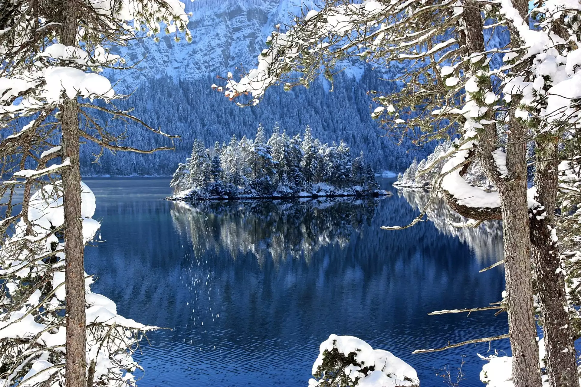 Zdjęcia, Jezioro, Wyspa, Las, Zima