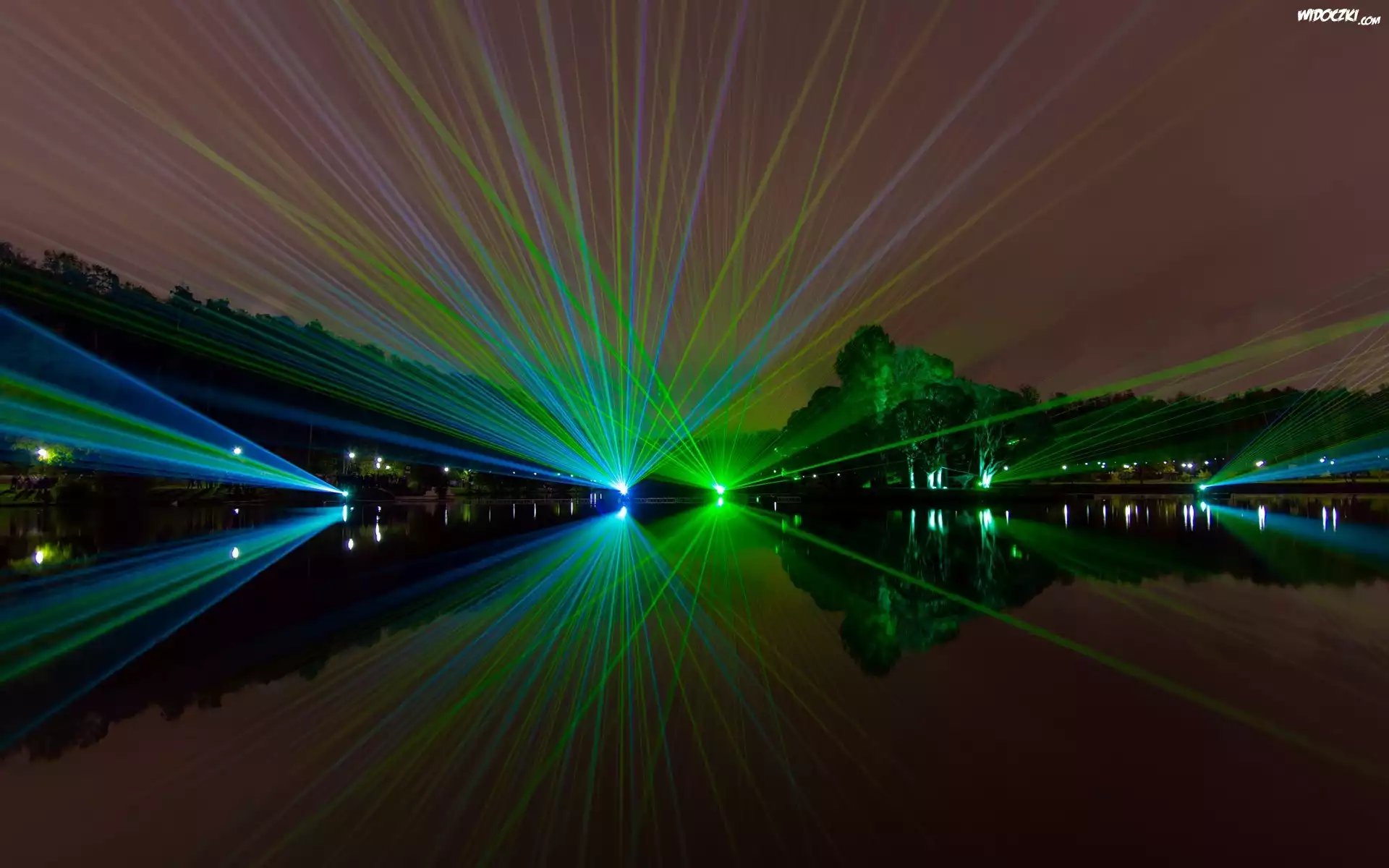 Jezioro, Noc, Lasery, Pokaz