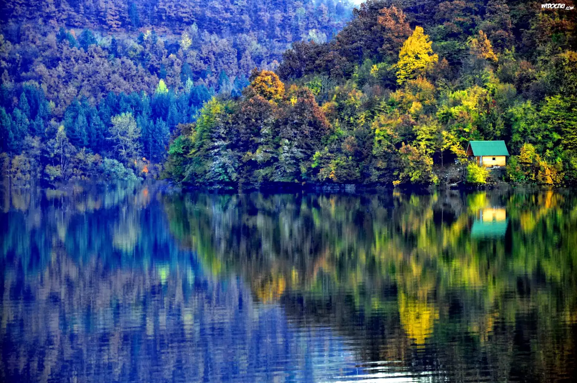 Zdjęcia, Jezioro, Góry, Lasy, Domek