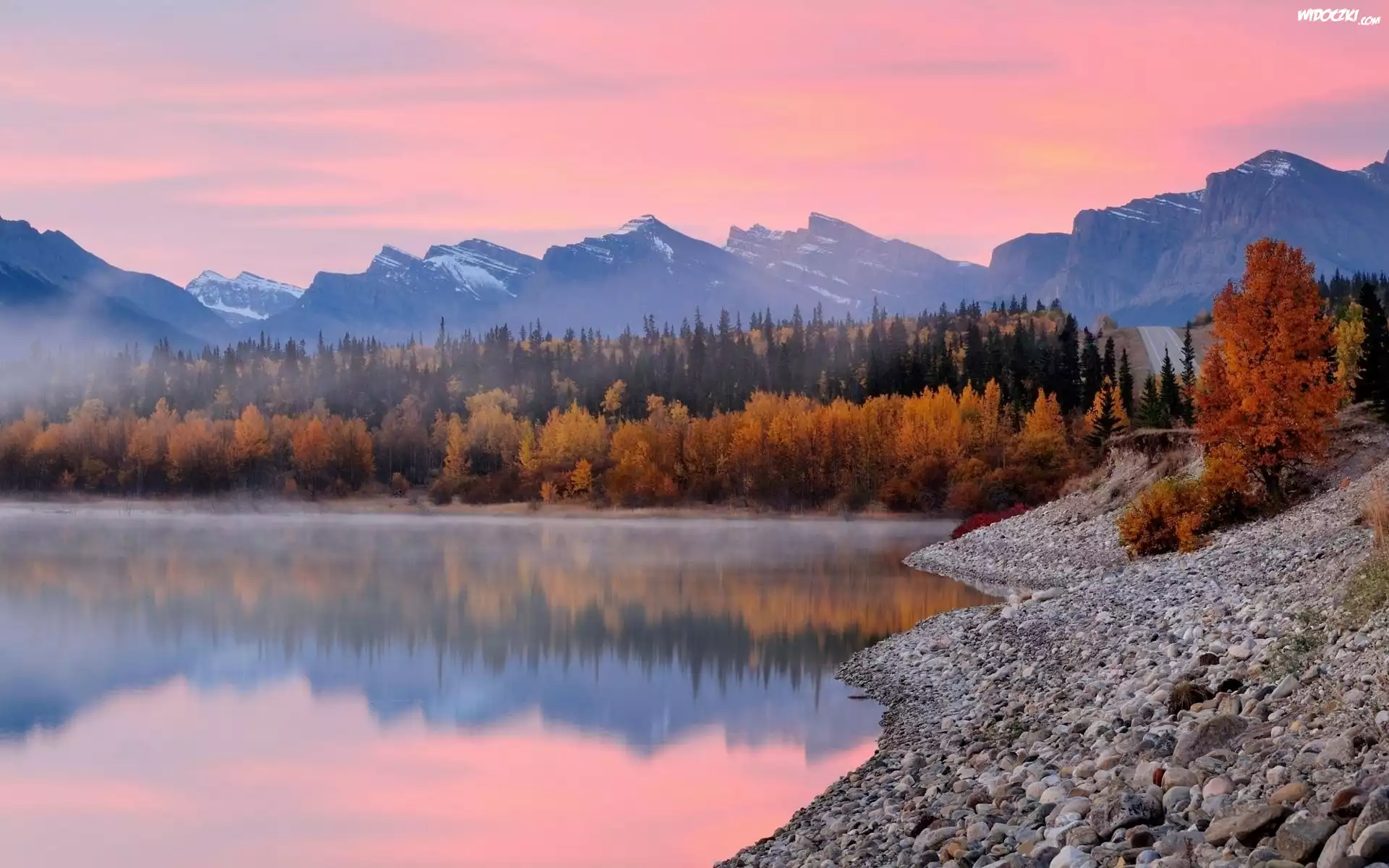 Jezioro, Góry, Lasy, Jesień