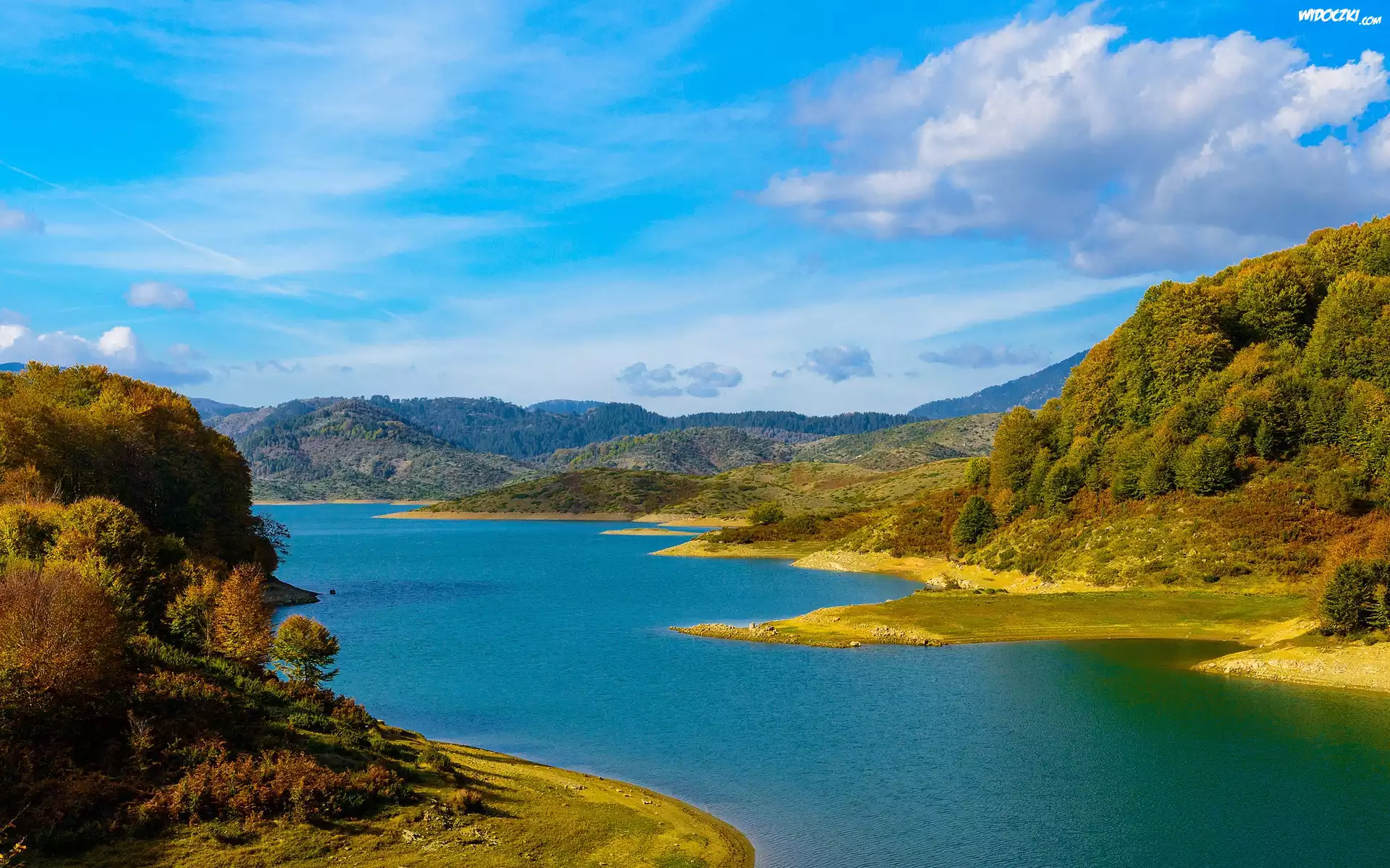 Zdjęcia, Jezioro, Góry, Lasy, Jesień