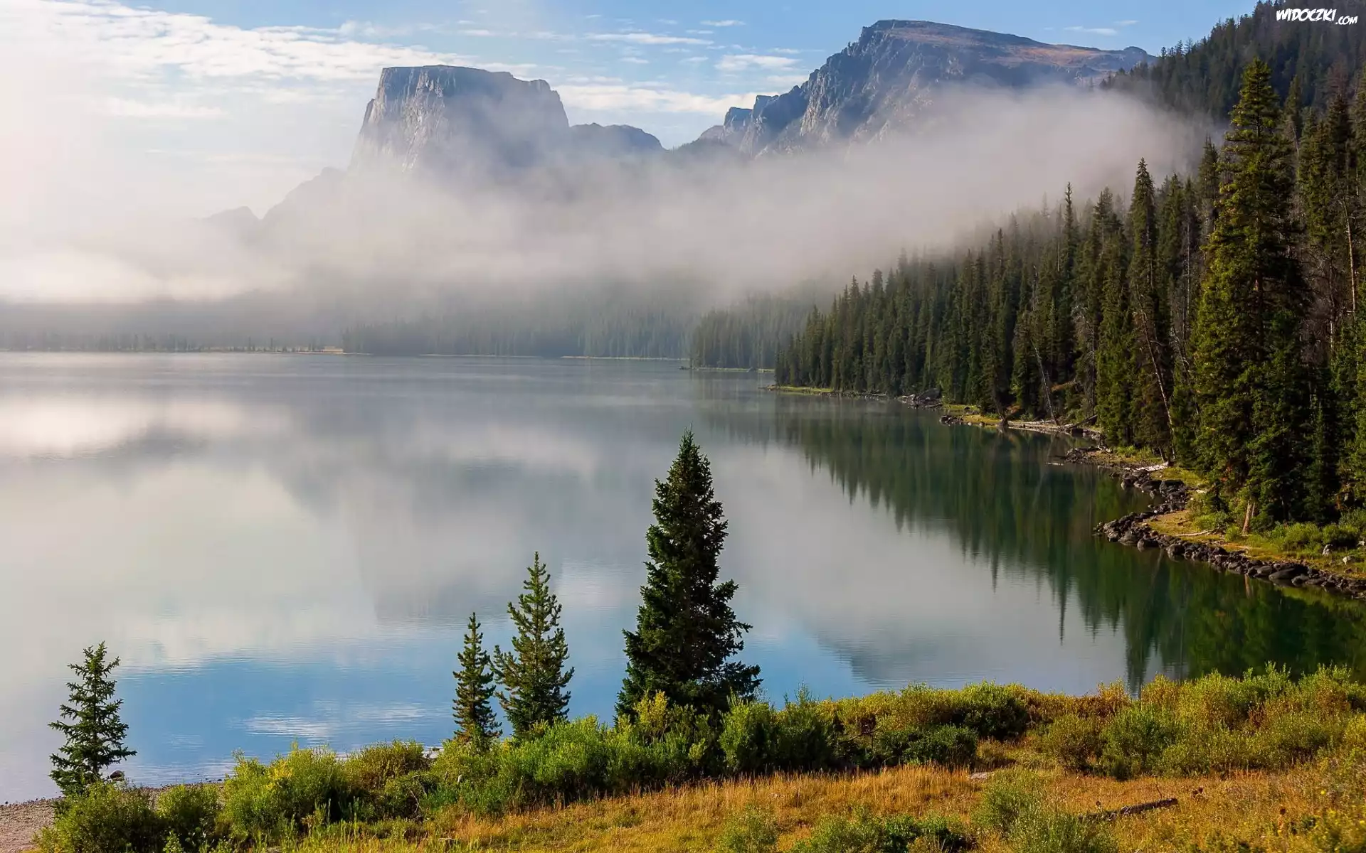 Zdjęcia, Jezioro, Góry, Lasy, Mgła
