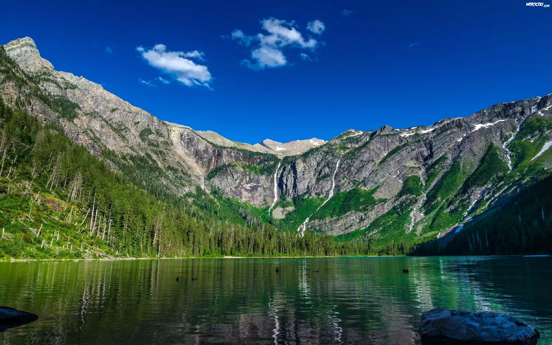 Zdjęcia, Jezioro, Góry, Lasy, Niebo