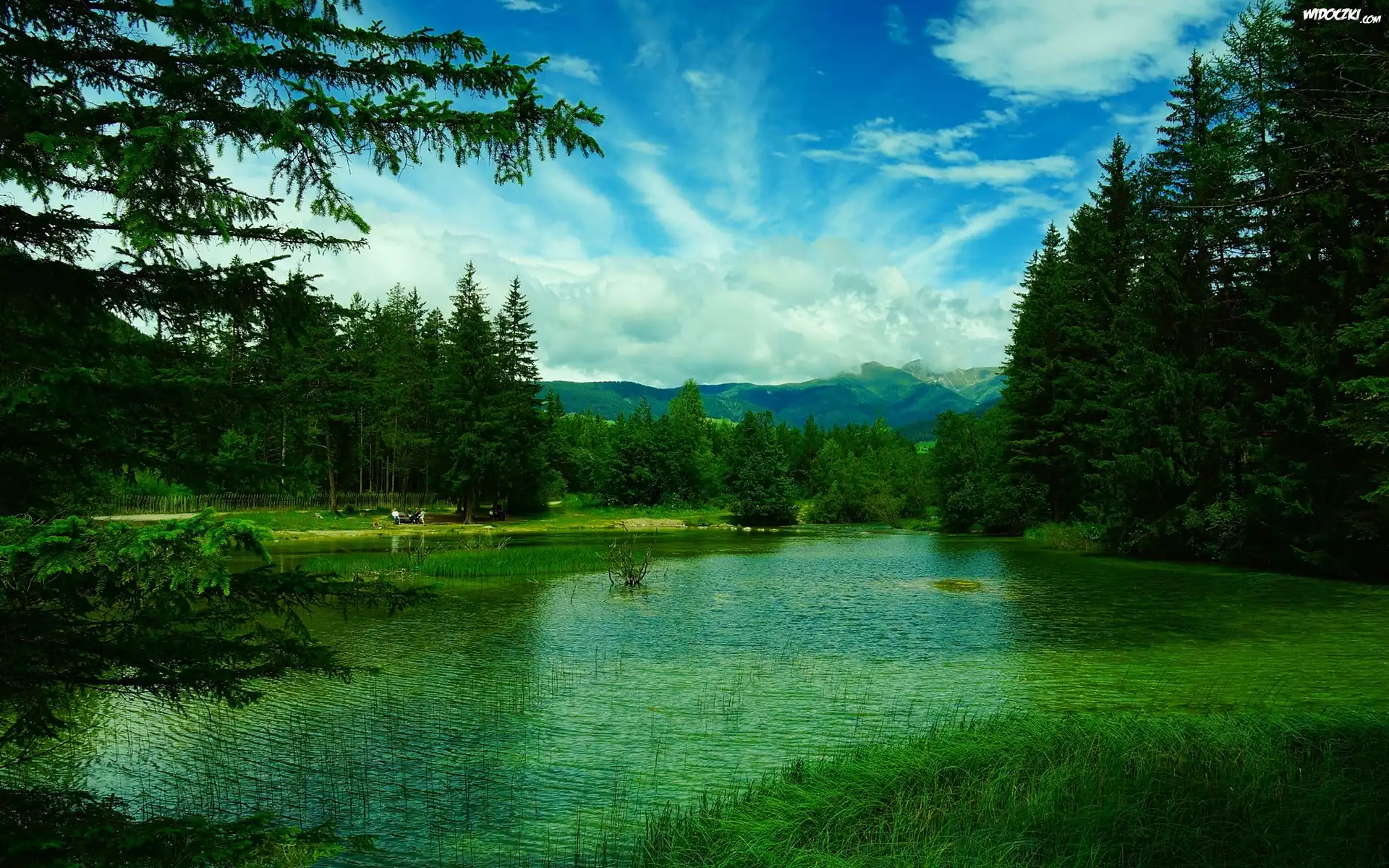 Zdjęcia, Jezioro, Toblach, Włochy, Lasy, Lato