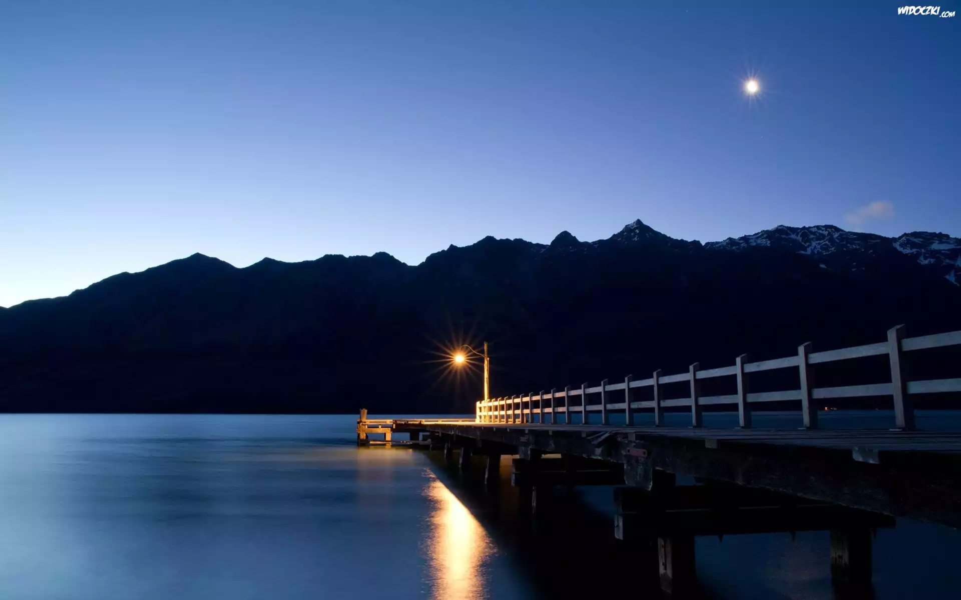 Zdjęcia, Jezioro, Góry, Pomost, Latarnia, Księżyc