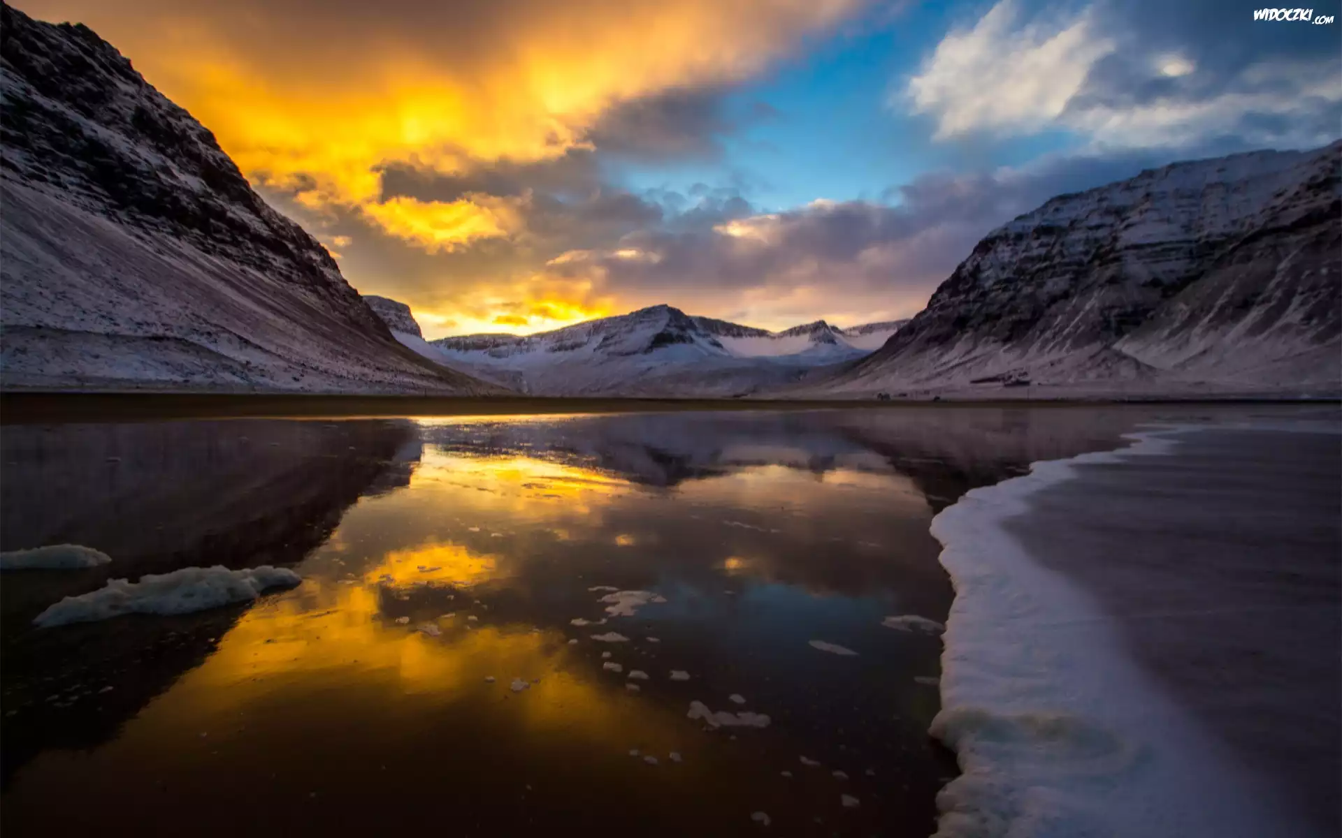 Zdjęcia, Jezioro, Góry, Lód, Odbicie