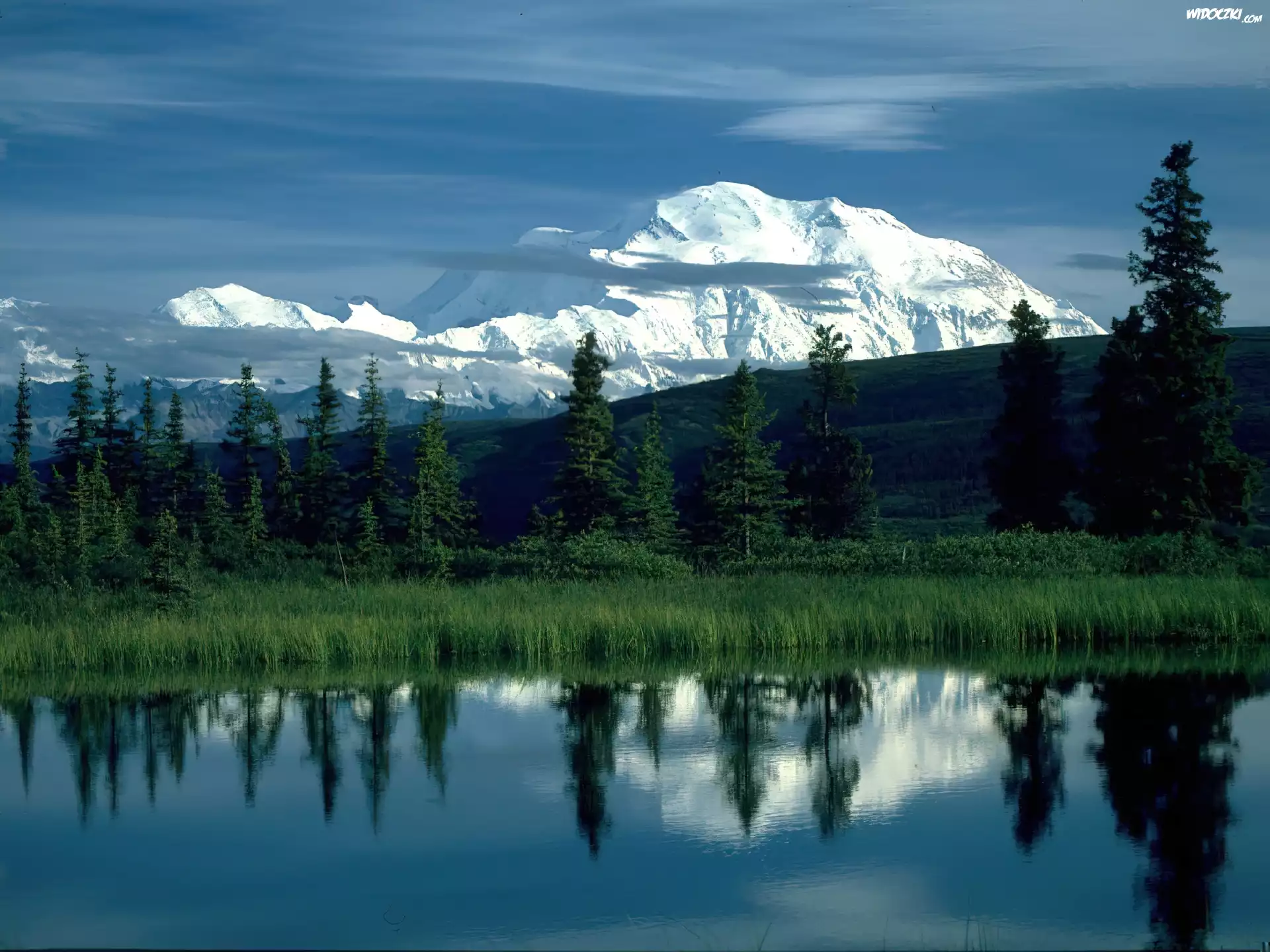 Zdjęcia, Jezioro, Drzewa, Góra, McKinley, Alaska