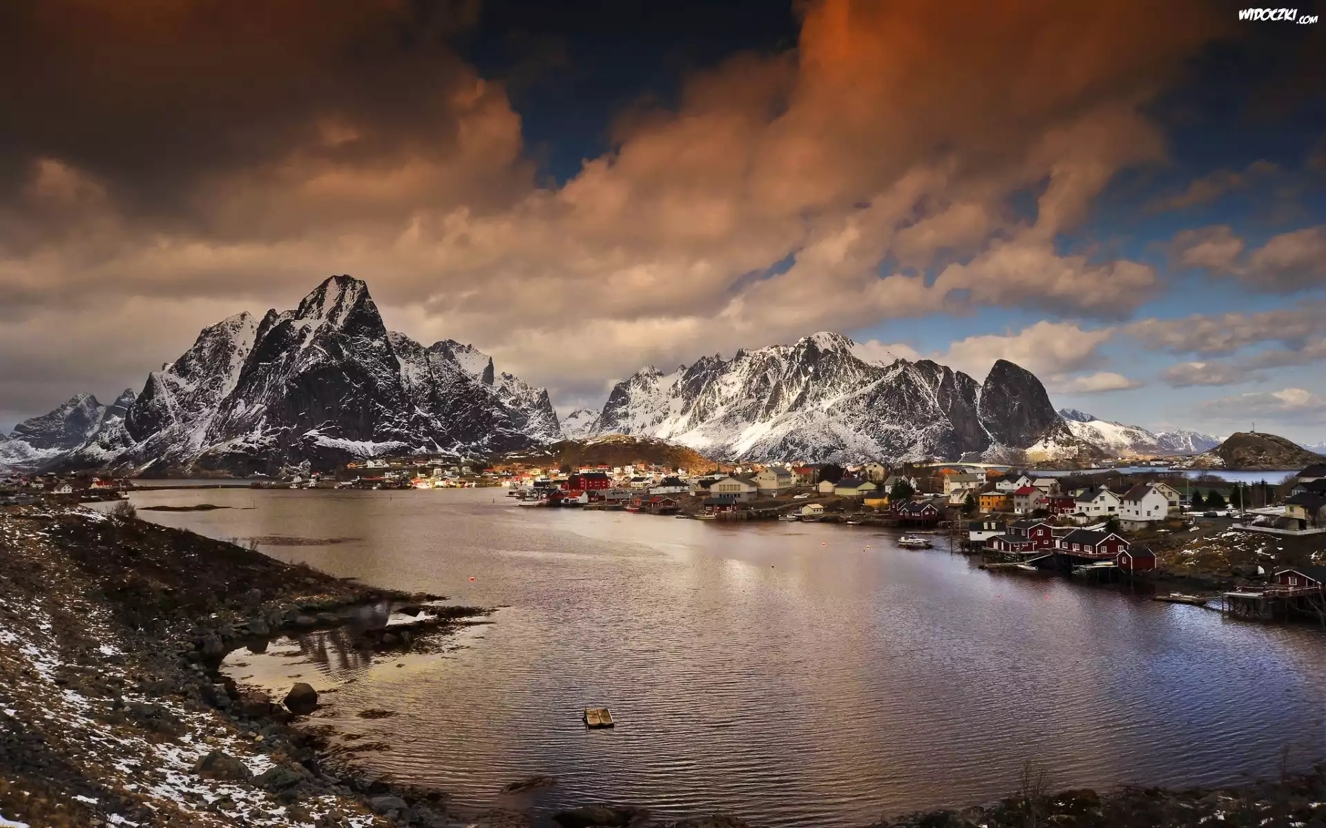 Zdjęcia, Jezioro, Góry, Miasteczko, Norwegia