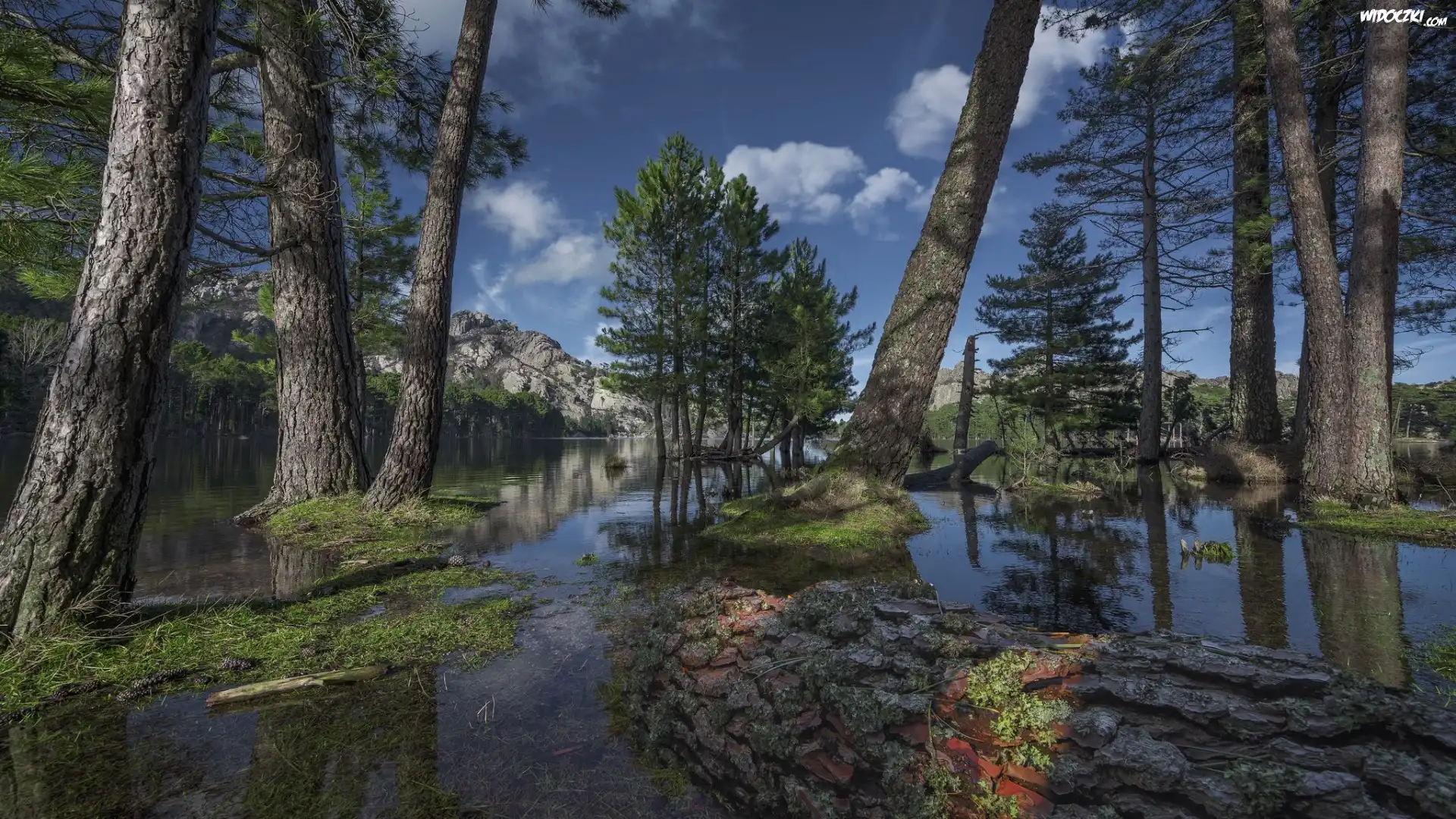 Zdjęcia, Jezioro L-Ospedale, Miejscowość L-Ospedale, Gmina Porto-Vecchio, Korsyka, Francja, Drzewa, Las