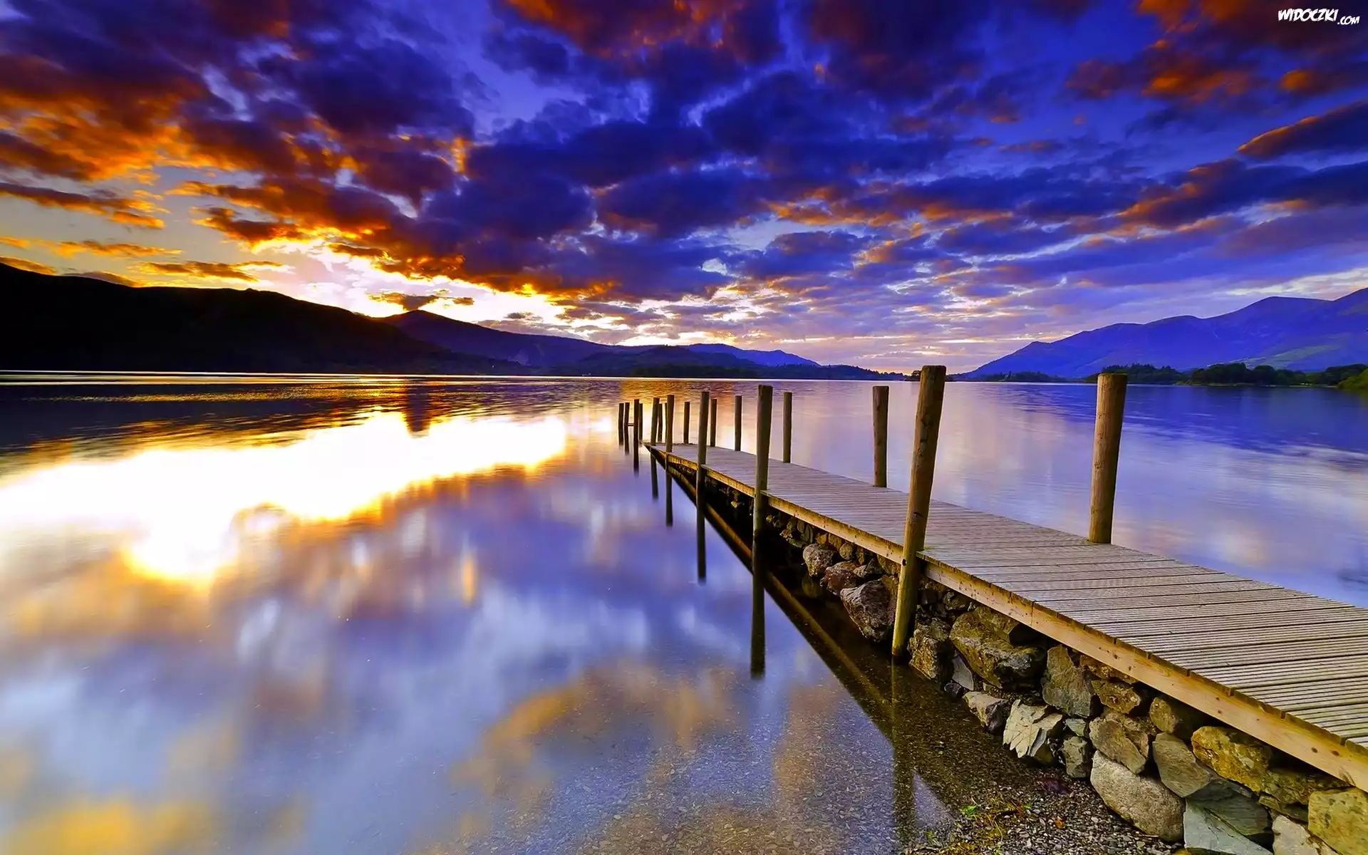 Zdjęcia, Molo, Jezioro, Chmury