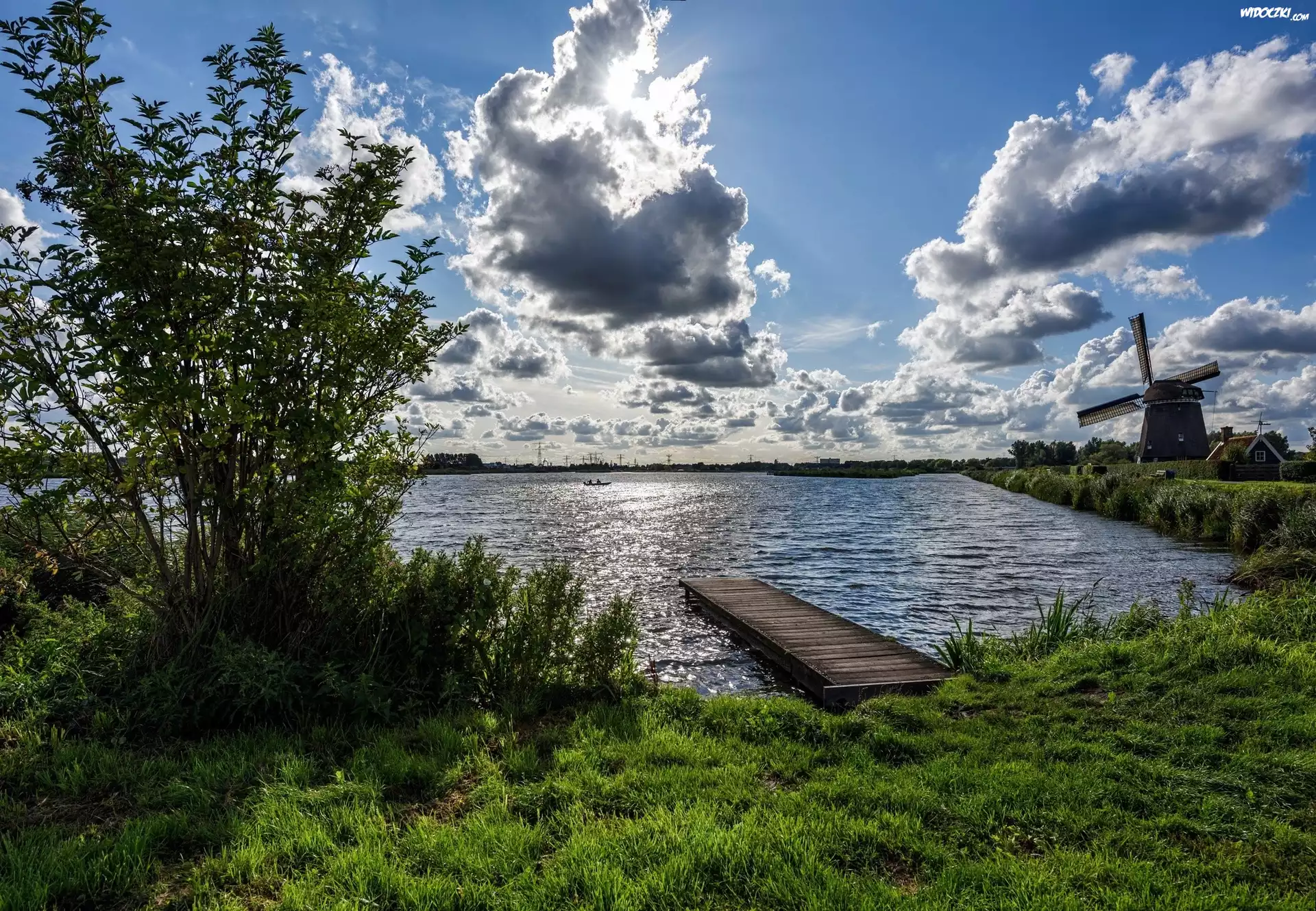 Zdjęcia, Jezioro, Wiatrak, Molo, Drzewa