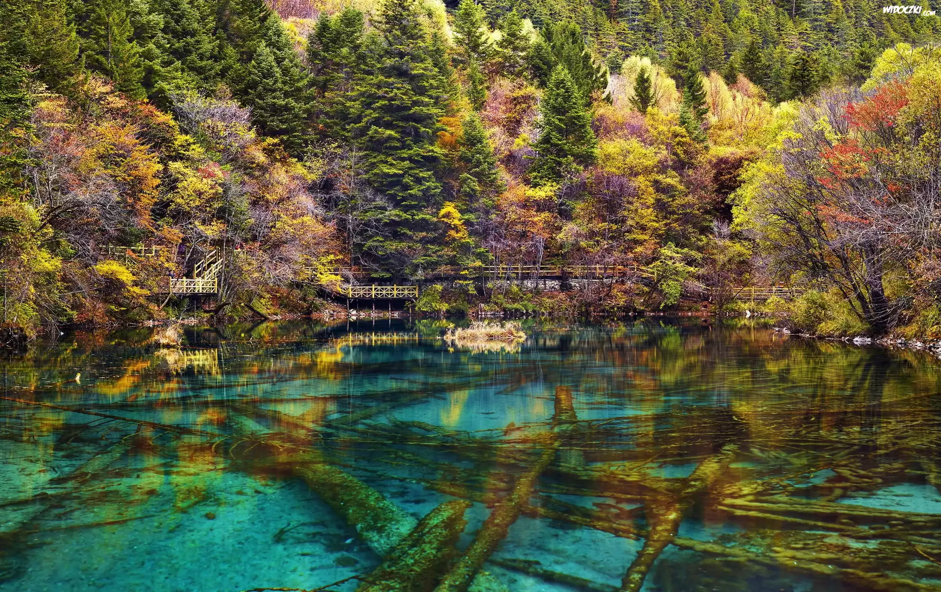 Zdjęcia, Jezioro, Las, Most, Jesień
