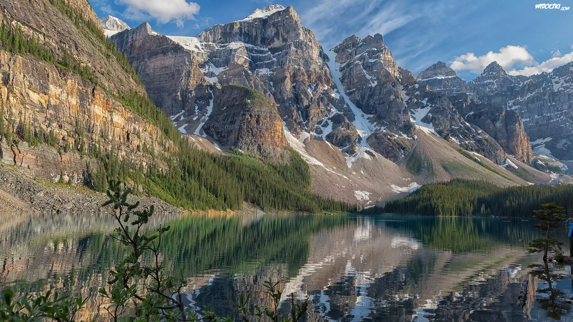 Zdjęcia, Jezioro, Moraine Lake, Góry, Drzewa, Park Narodowy Banff, Kanada