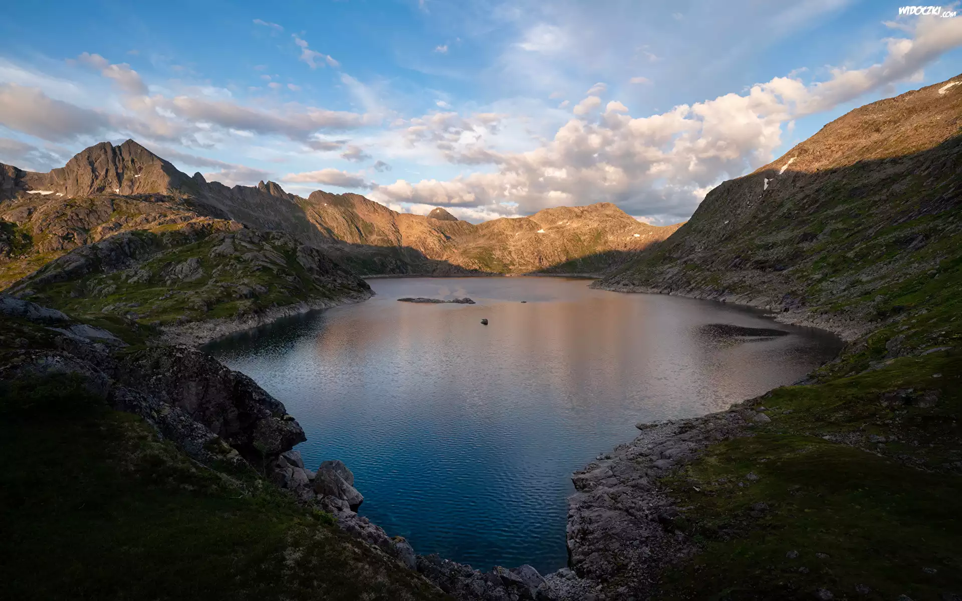 Zdjęcia, Góry, Jezioro, Niebo, Białe, Chmury