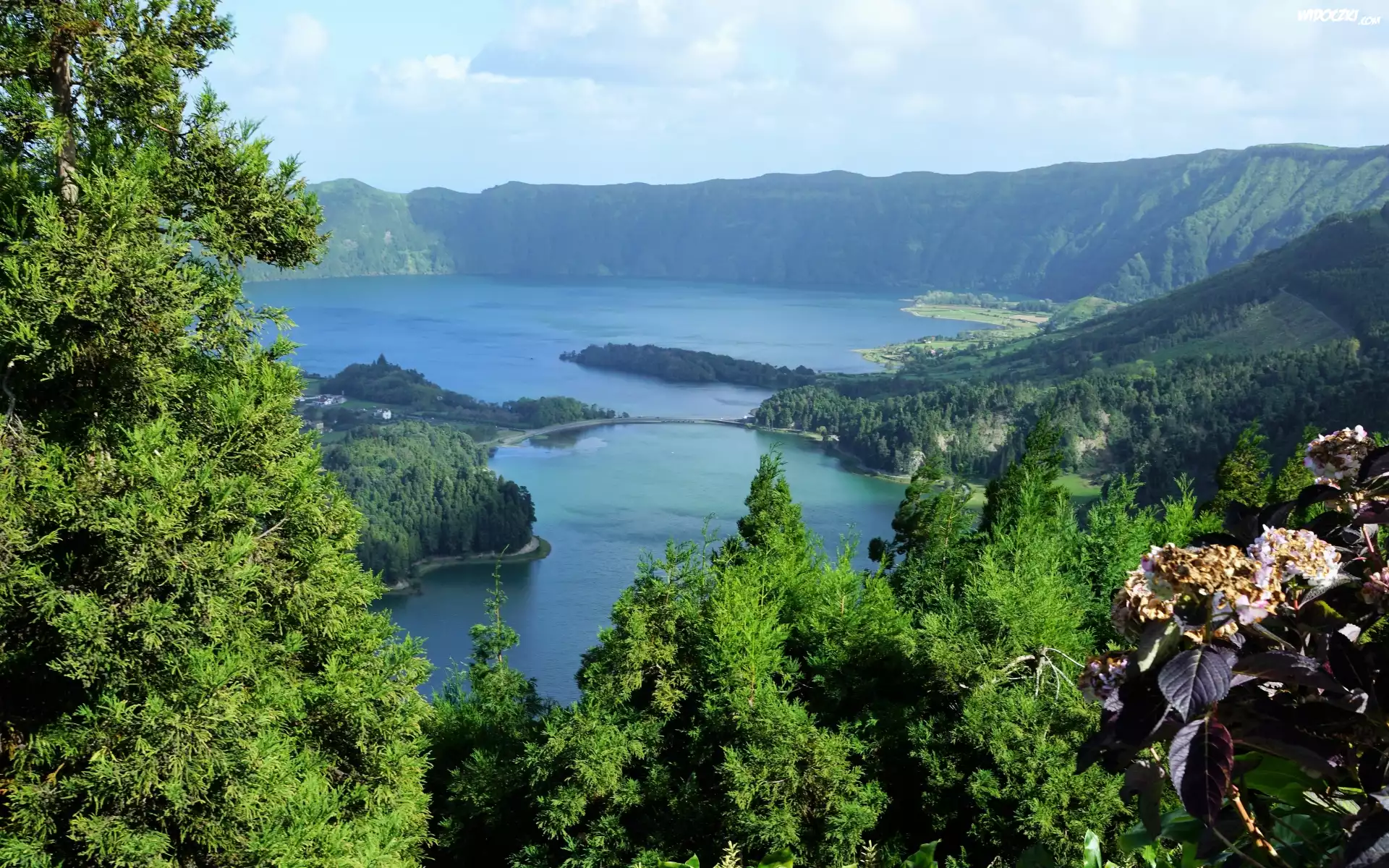 Zdjęcia, Jezioro, Drzewa, Niebo, Wzgórza