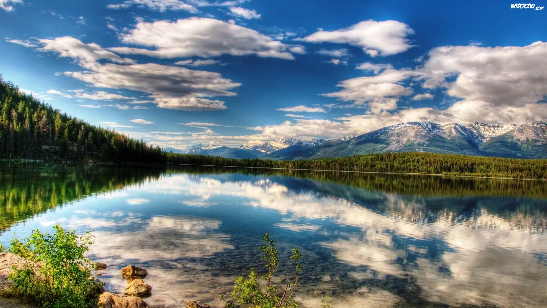 Zdjęcia, Jezioro, Las, Góry, Niebo, Chmury