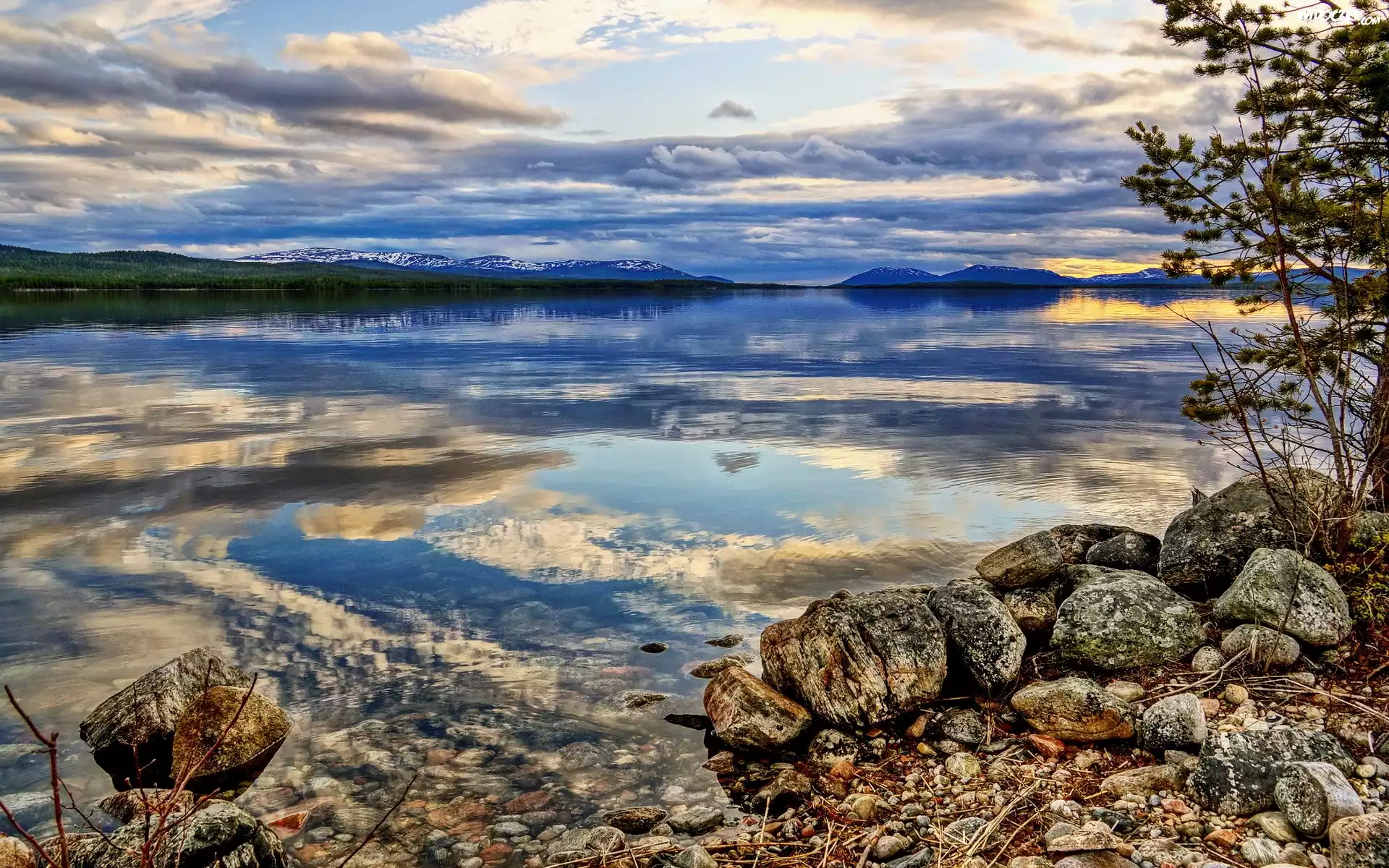 Zdj臋cia, Jezioro, Kamienie, Niebo, Odbicie