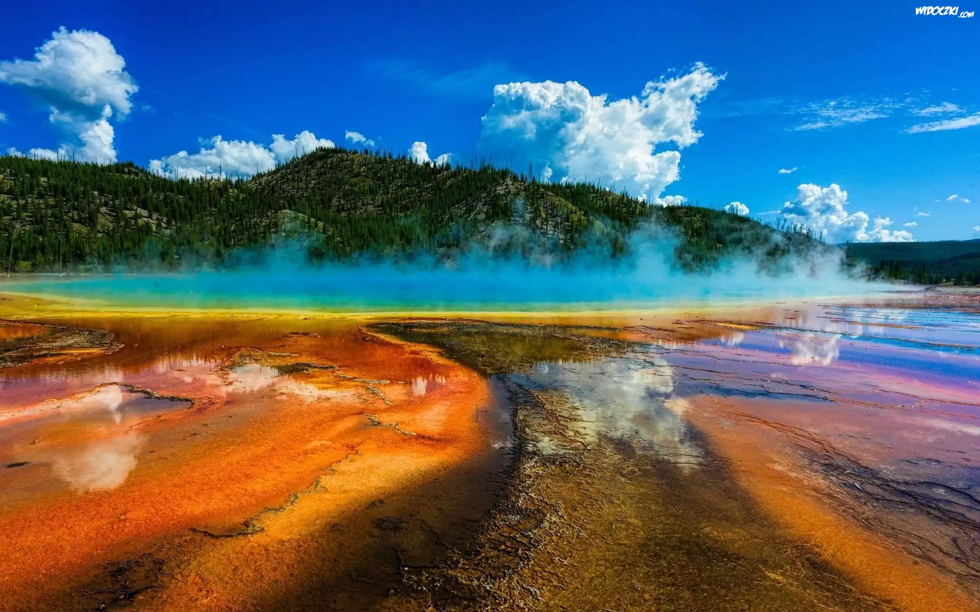 Zdjęcia, Jezioro, Mgła, Las, Niebo, Chmury