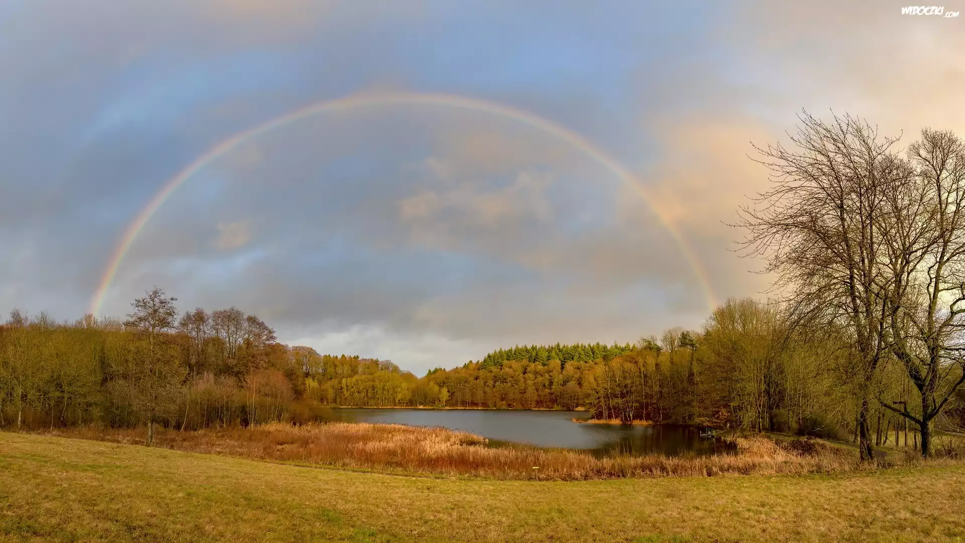 Zdjęcia, Drzewa, Jezioro Holzmaar, Tęcza, Gillenfeld, Nadrenia-Palatynat, Niemcy