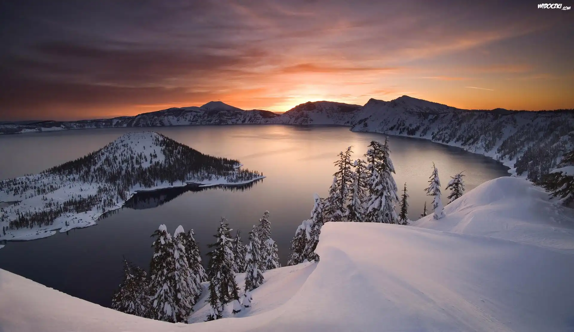 Zdjęcia, Jezioro, Choinki, Zaspy, Śnieżne, Góry