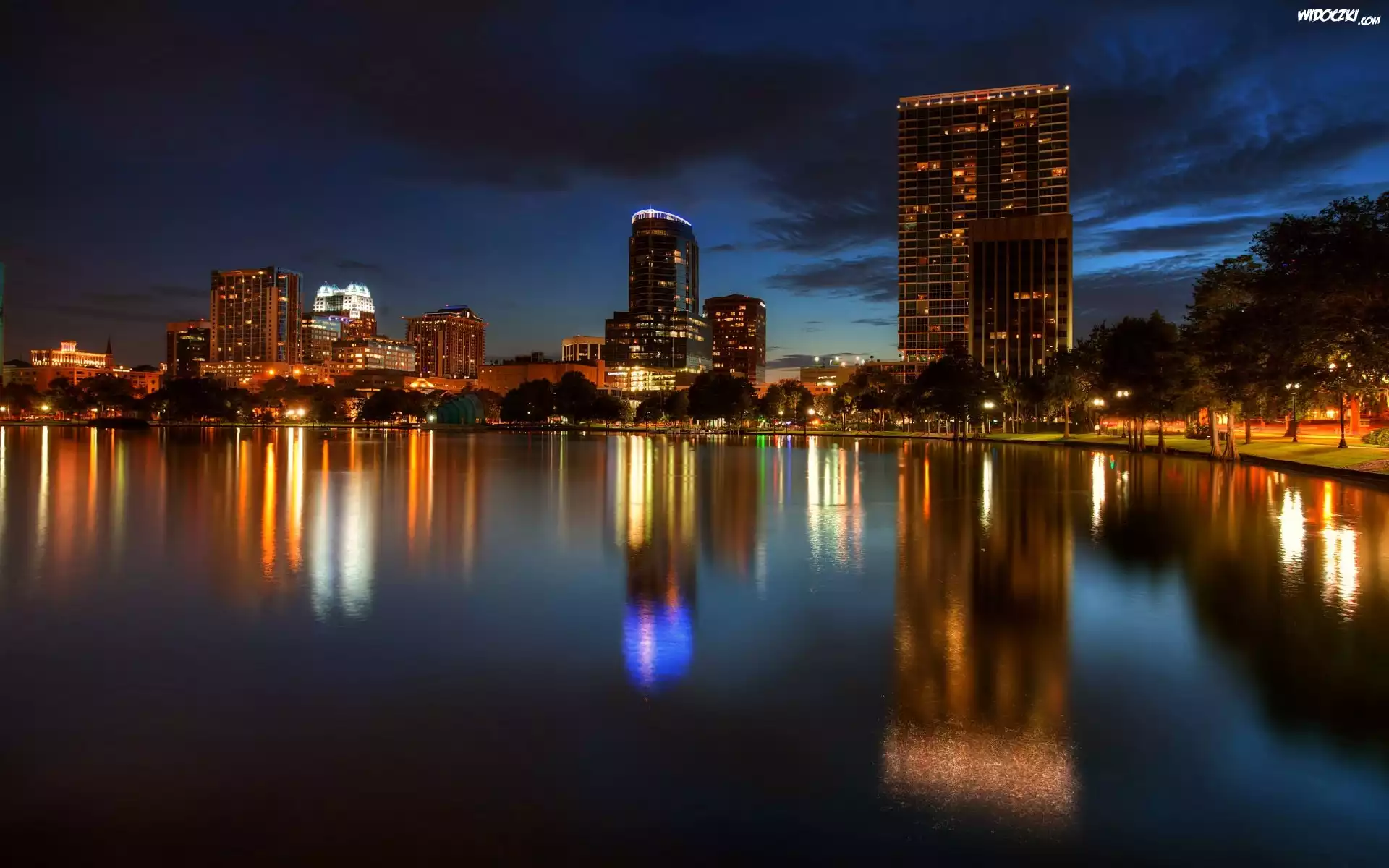 Zdj臋cia, Jezioro, Miasto, Noc, Floryda
