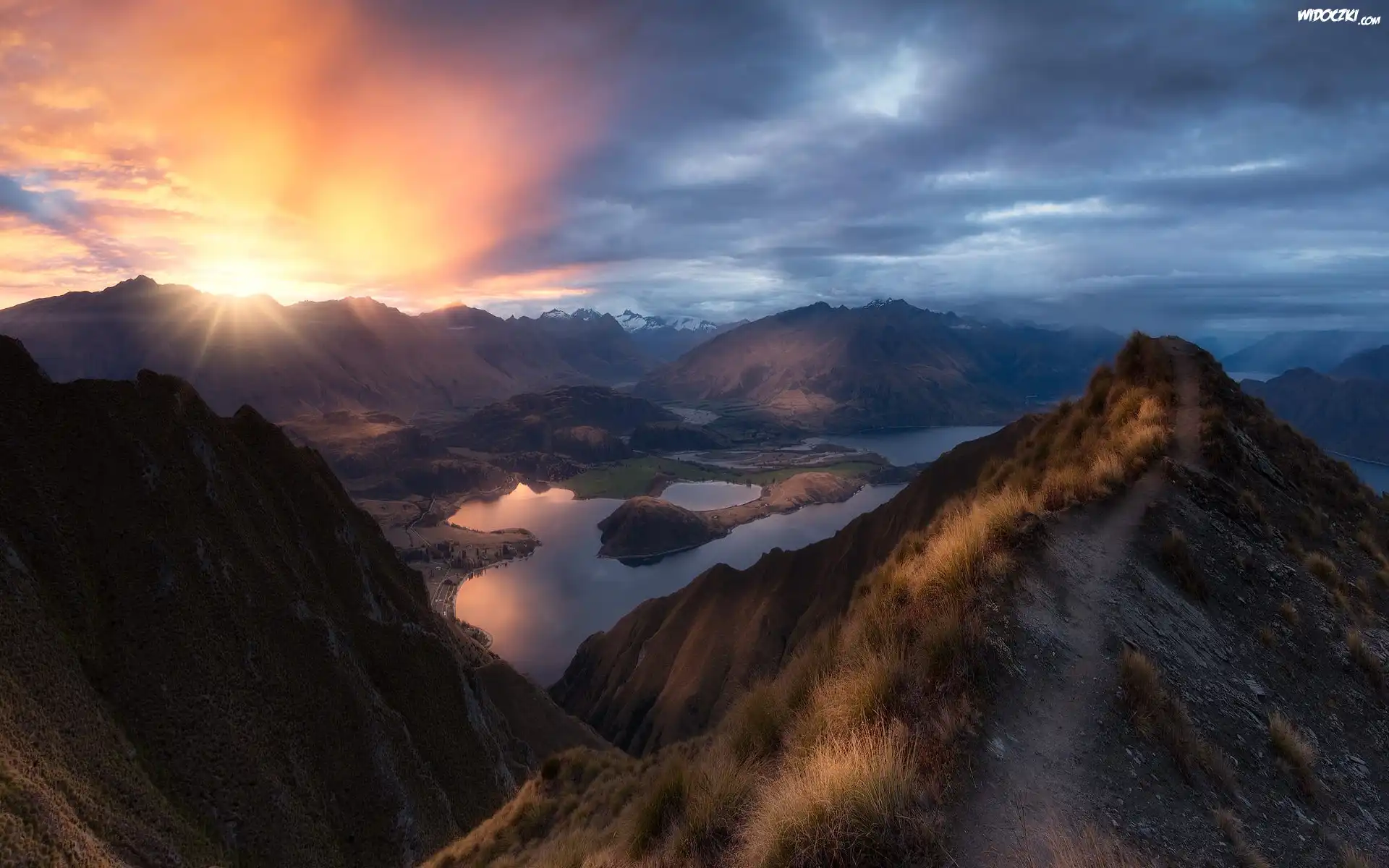 Zdjęcia, Jezioro Wanaka, Góry, Góra, Roys Peak, Wschód słońca, Nowa Zelandia