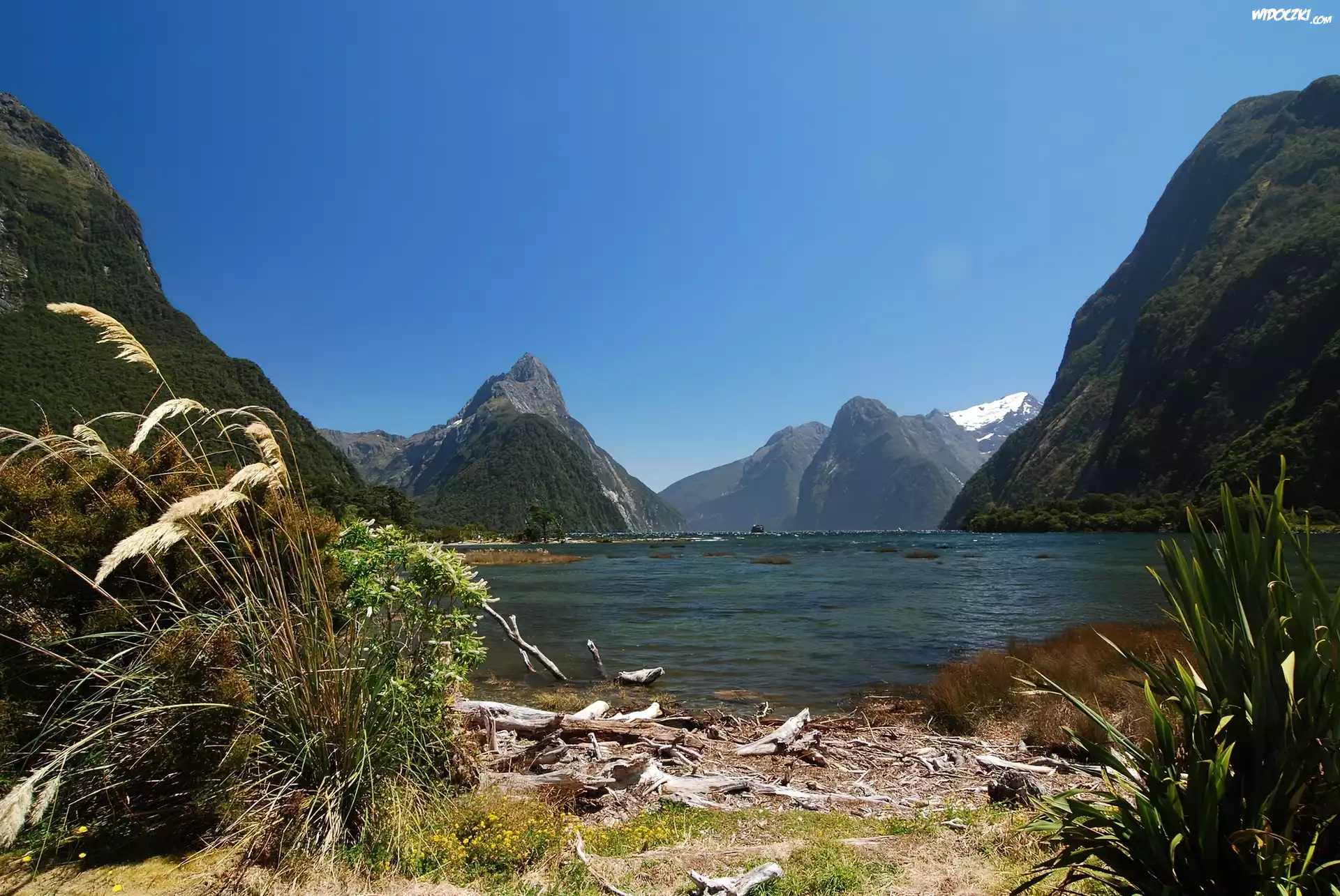 Zdjęcia, Jezioro, Góry, Milford Sound, Nowa Zelandia