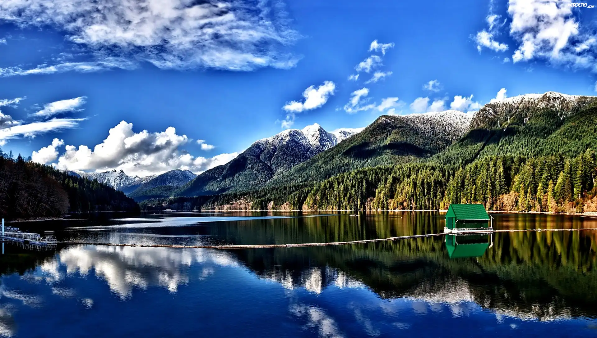 Zdjęcia, Jezioro, Góry, Odbicie, Chmury