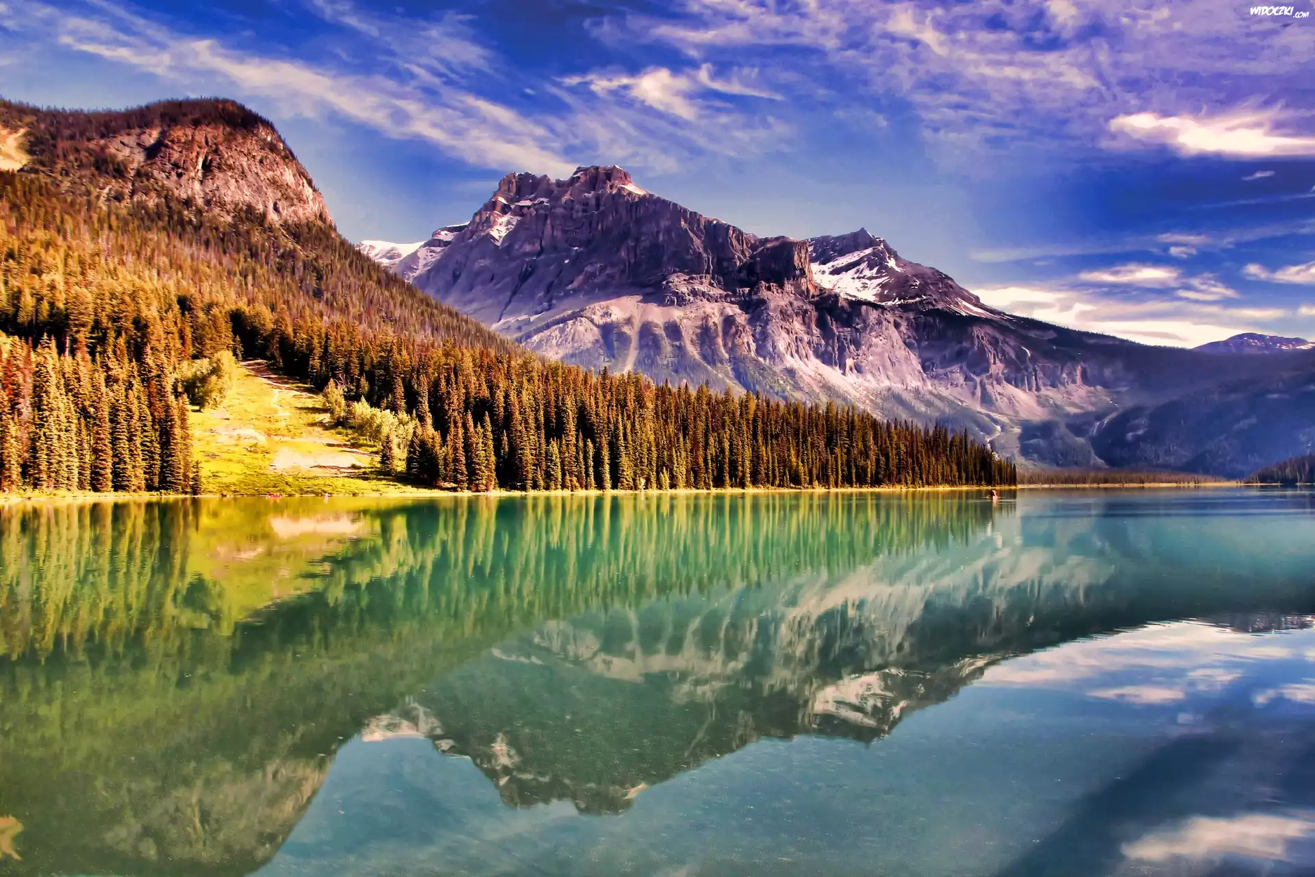 Zdjęcia, Jezioro, Góry, Odbicie, Drzewa