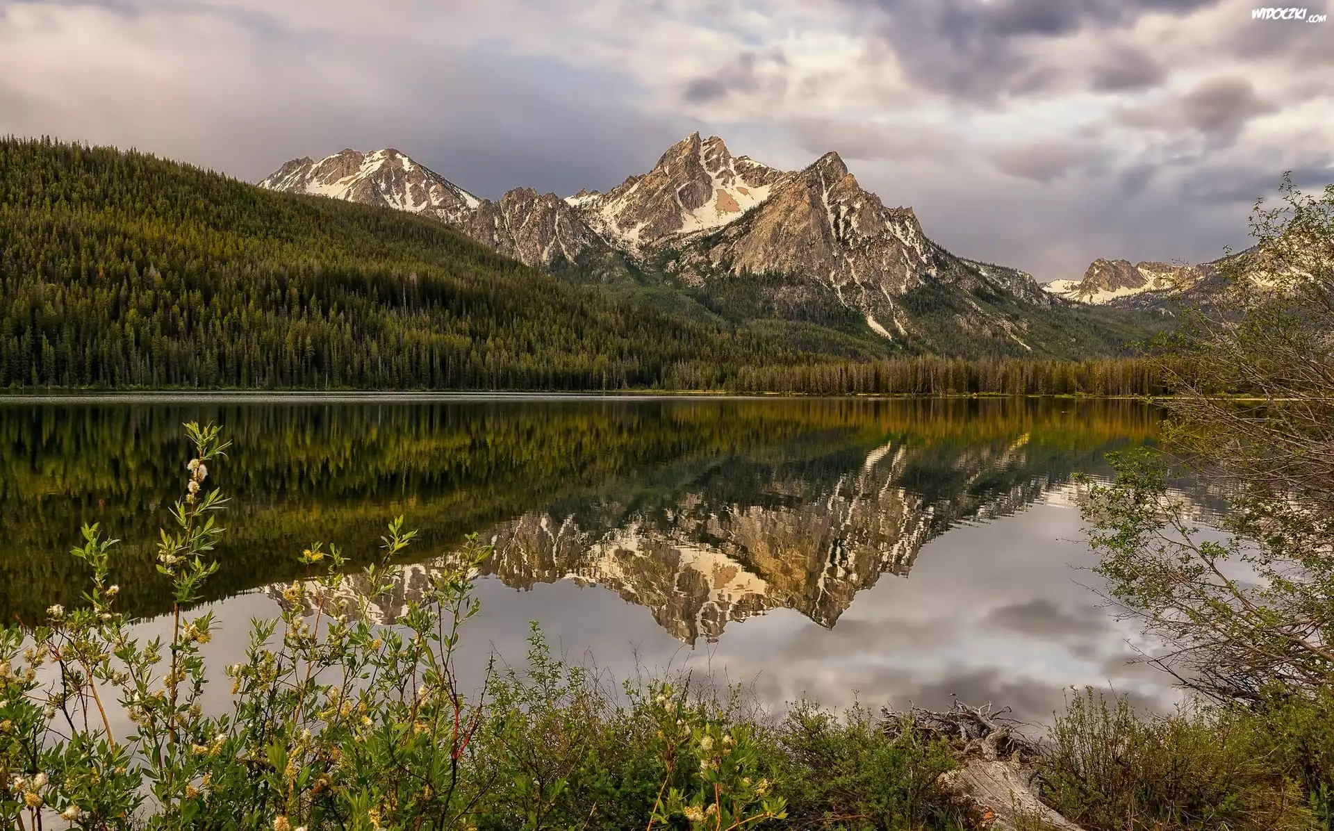 Zdjęcia, Jezioro, Las, Góry, Odbicie, Chmury