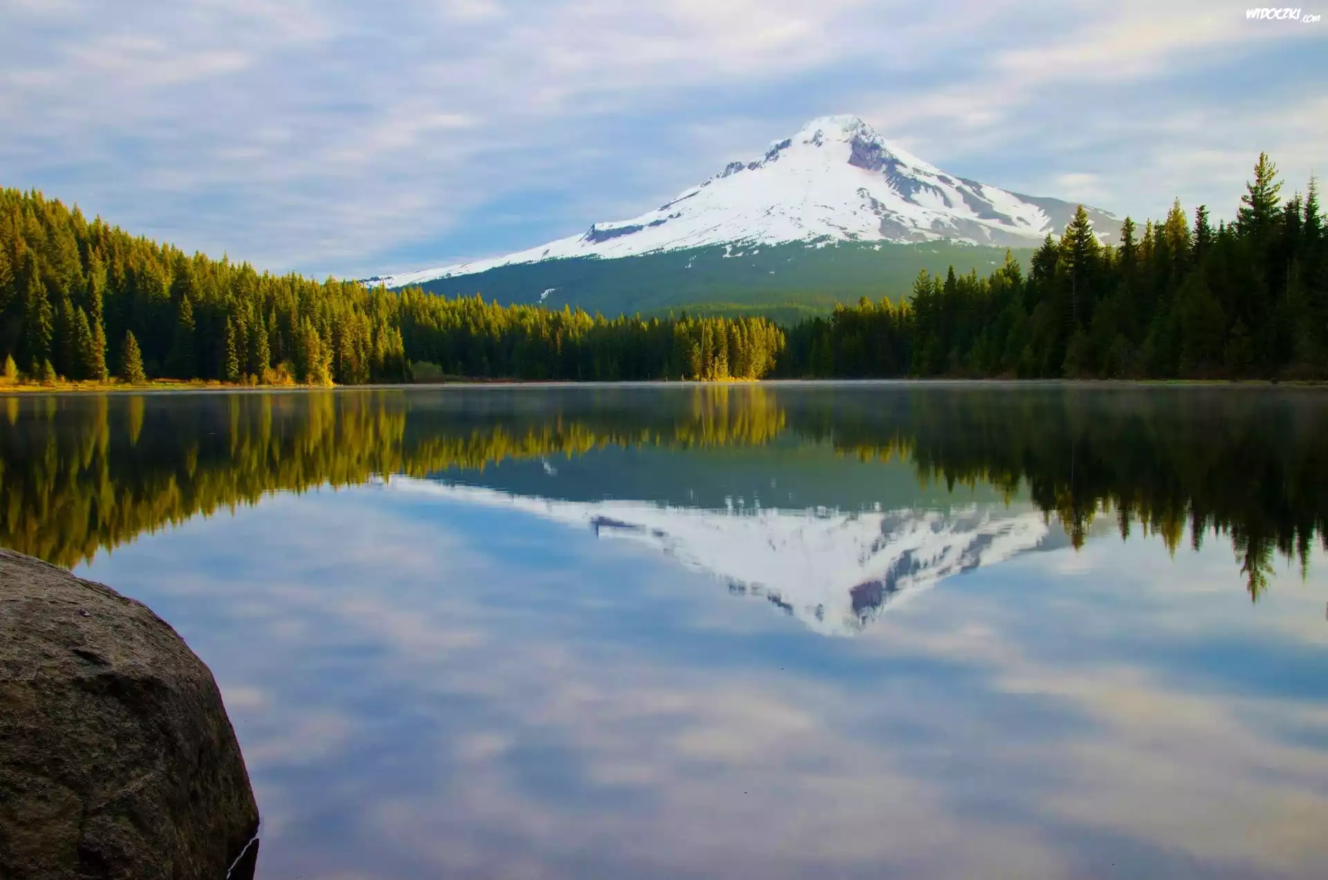 Zdjęcia, Jezioro, Góry, Odbicie, Las