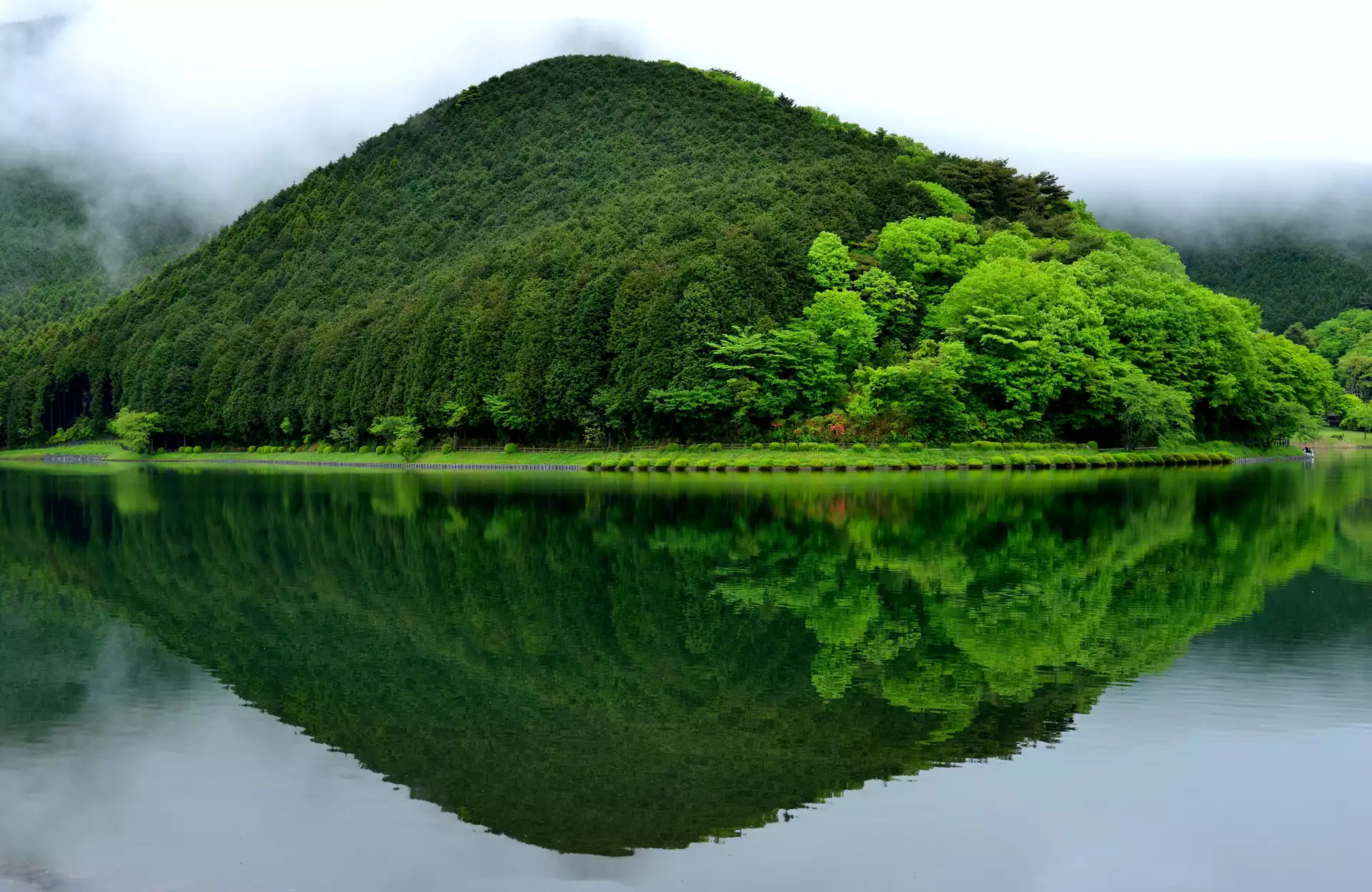 Zdjęcia, Jezioro, Góra, Zieleń, Odbicie, Japonia