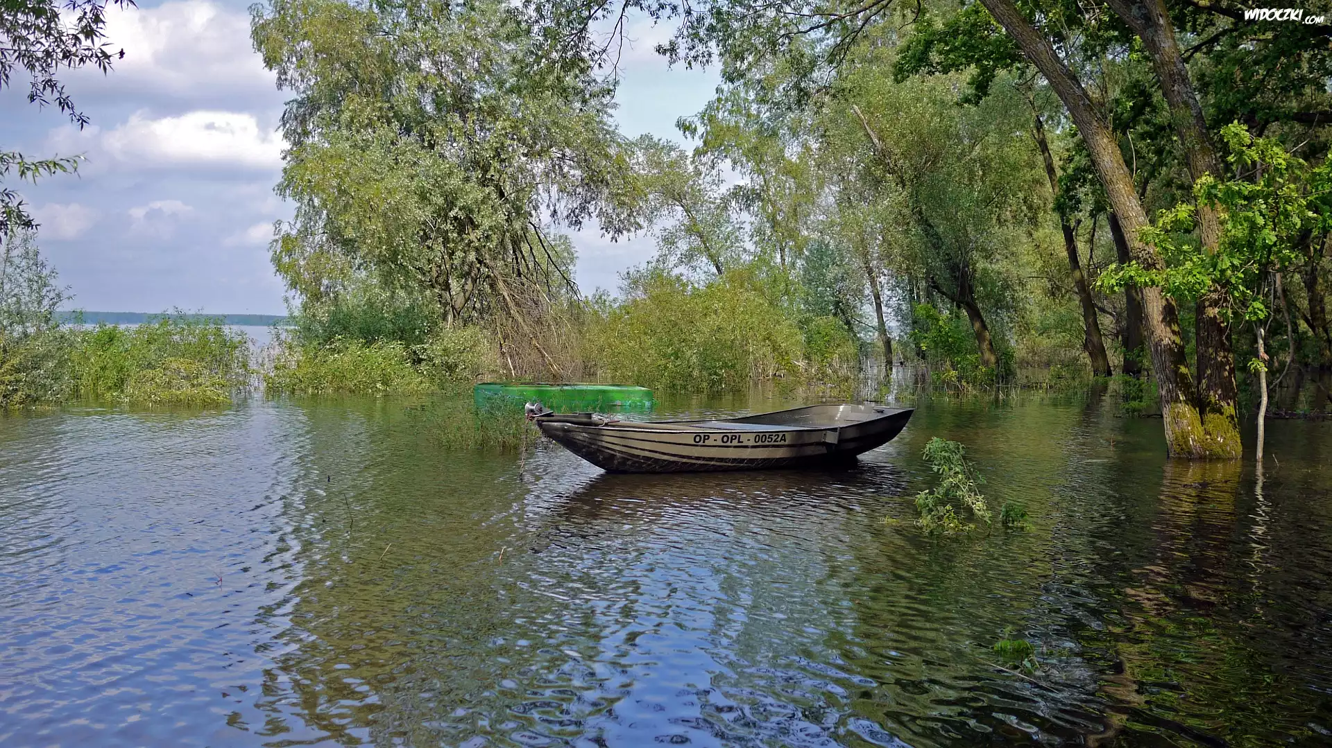Zdjęcia, Łódka, Jezioro, Drzewa