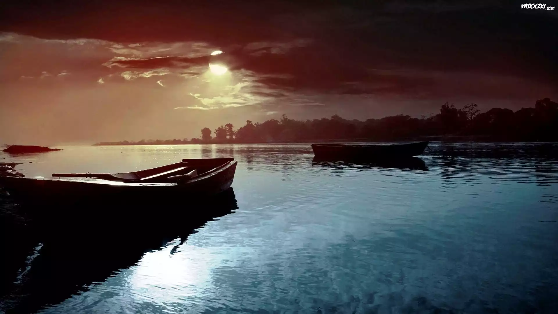 Łódki, Jezioro, Noc