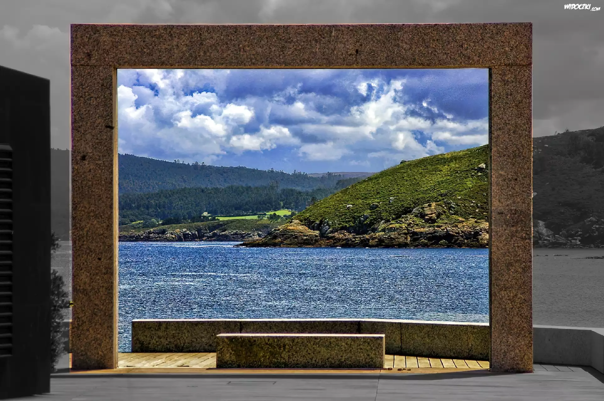 Zdjęcia, Jezioro, Góry, Okno, Taras