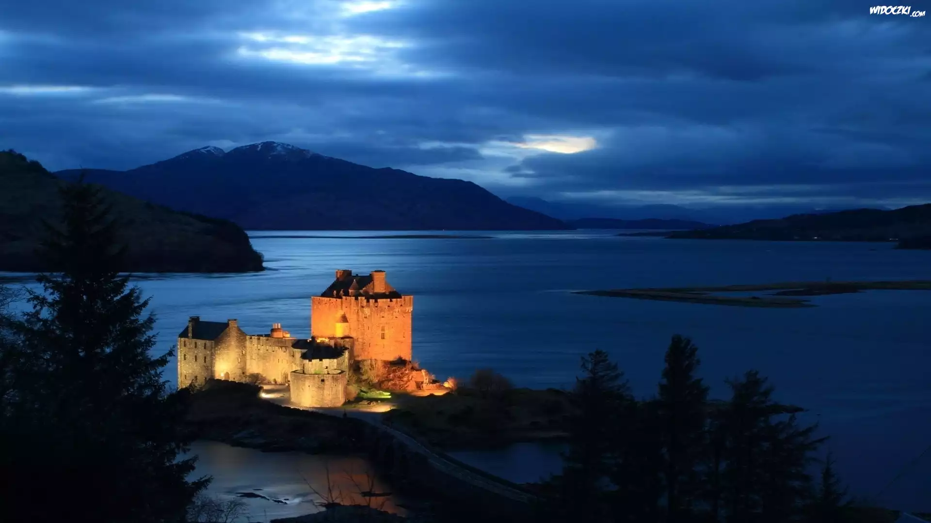 Zdjęcia, Jezioro, Góry, Oświetlony, Zamek