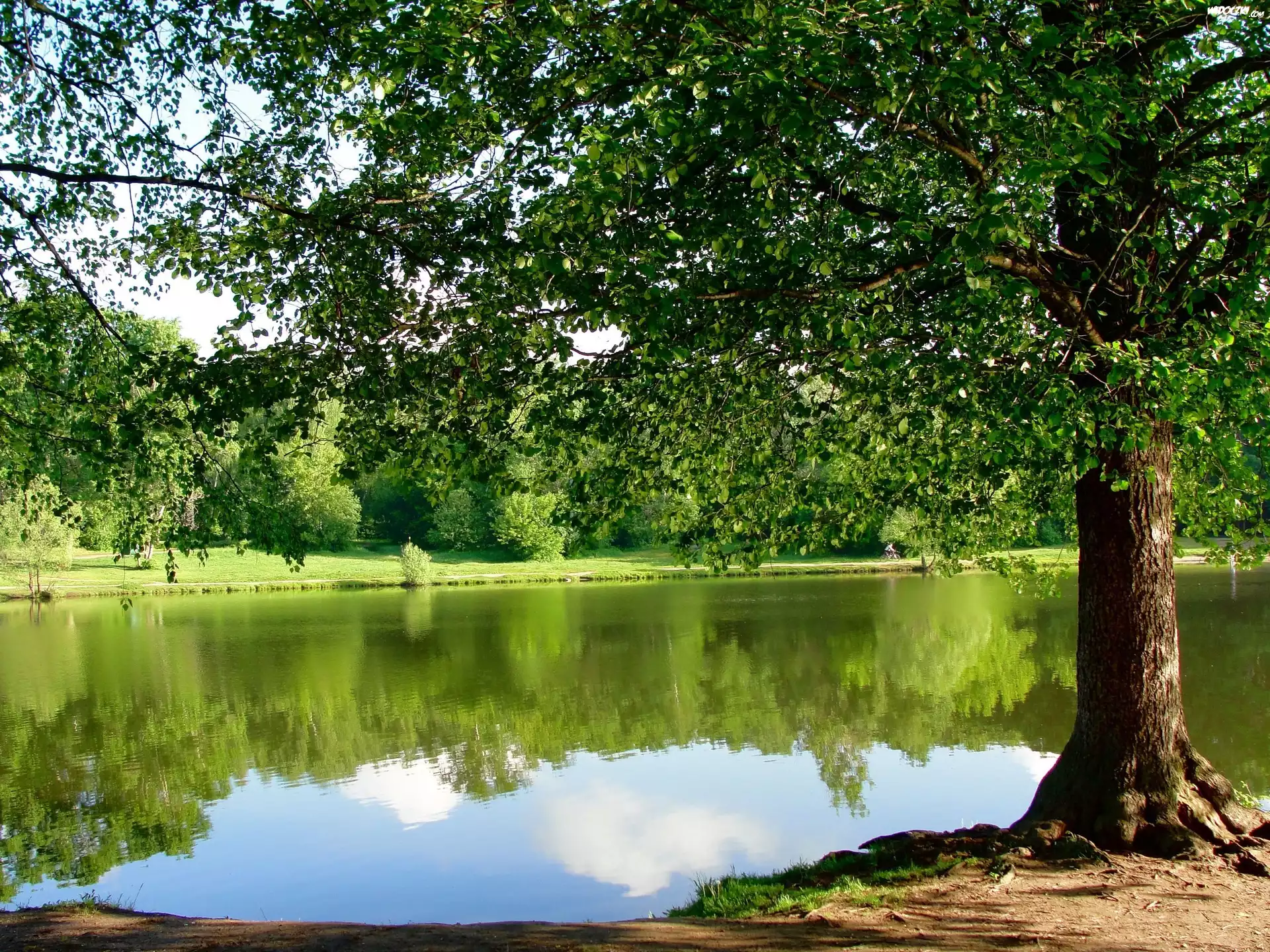 Park, Jezioro, Drzewa