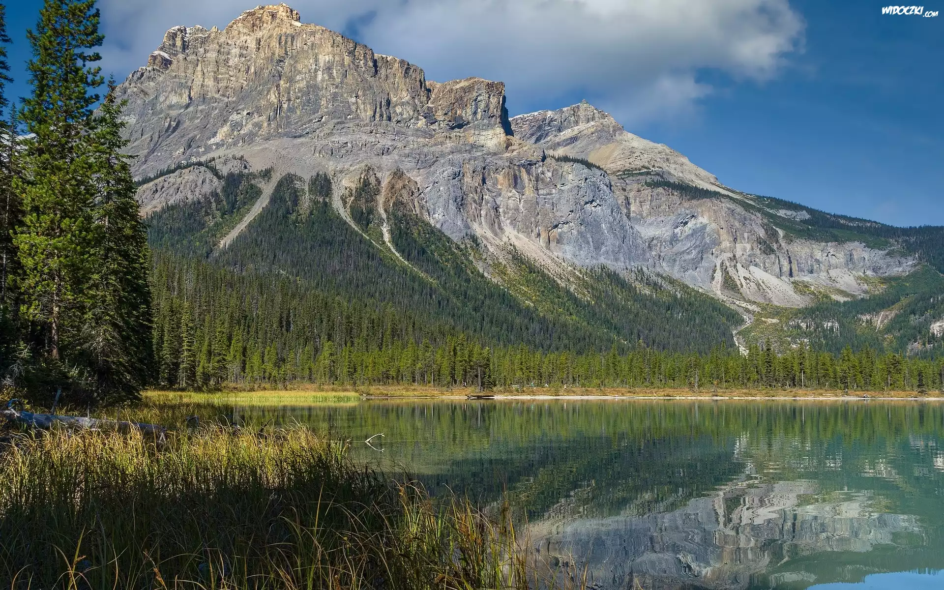 Zdjęcia, Park Narodowy Yoho, Góry Skaliste, Jezioro, Emerald Lake, Drzewa, Kolumbia Brytyjska, Kanada