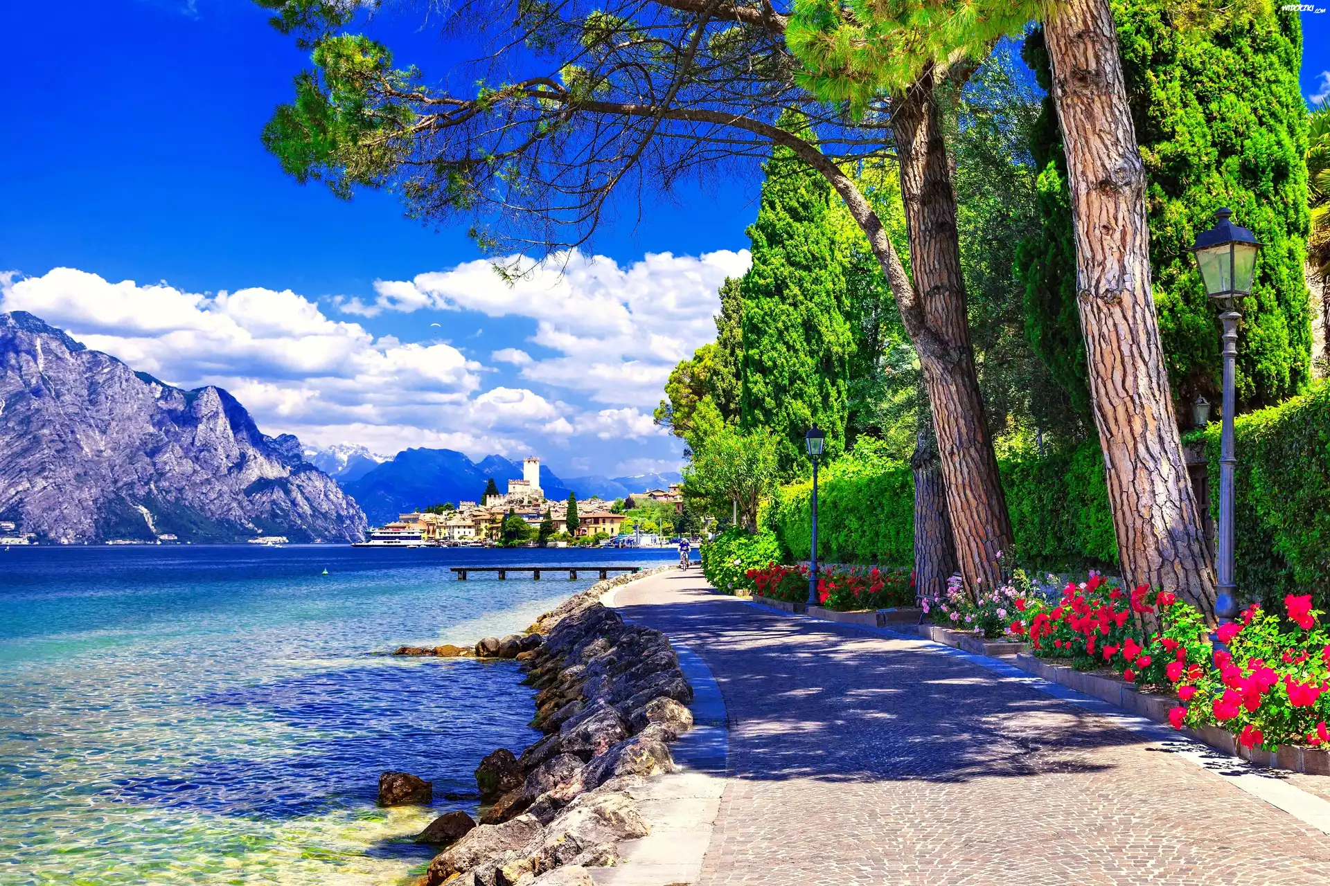 Zdjęcia, Jezioro, Garda, Włochy, Park, Bulwar