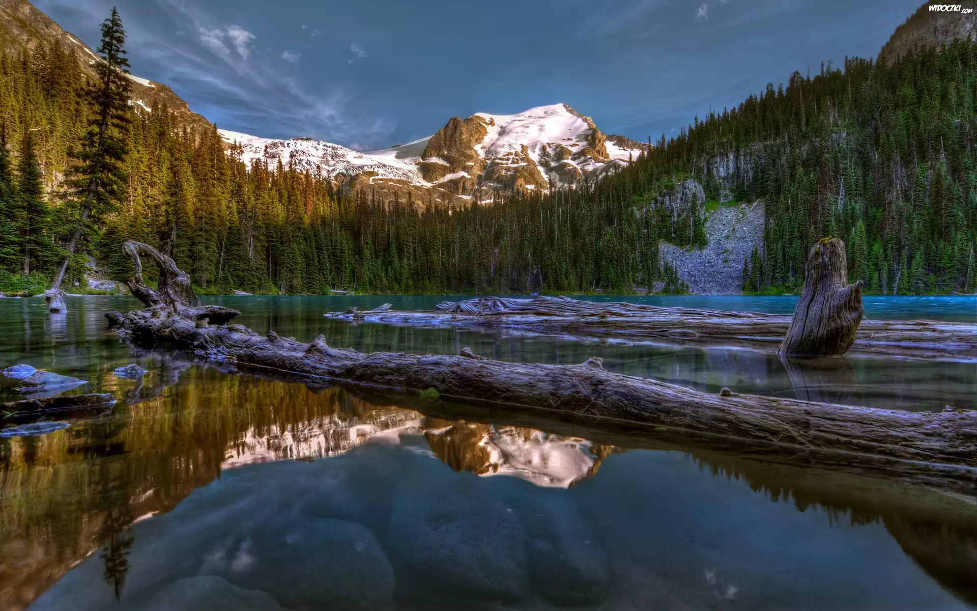 Zdjęcia, Jezioro, Góry, Pnie, Drzew