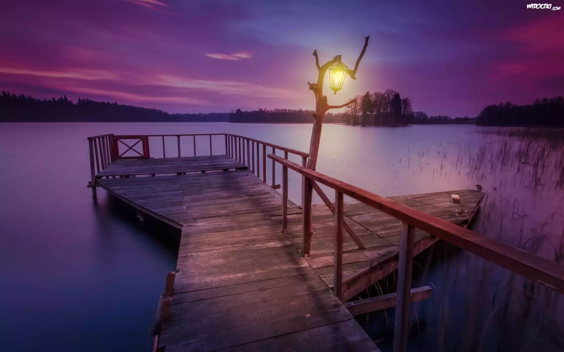 Zdj臋cia, Jezioro, Noc, Pomost, Latarnia