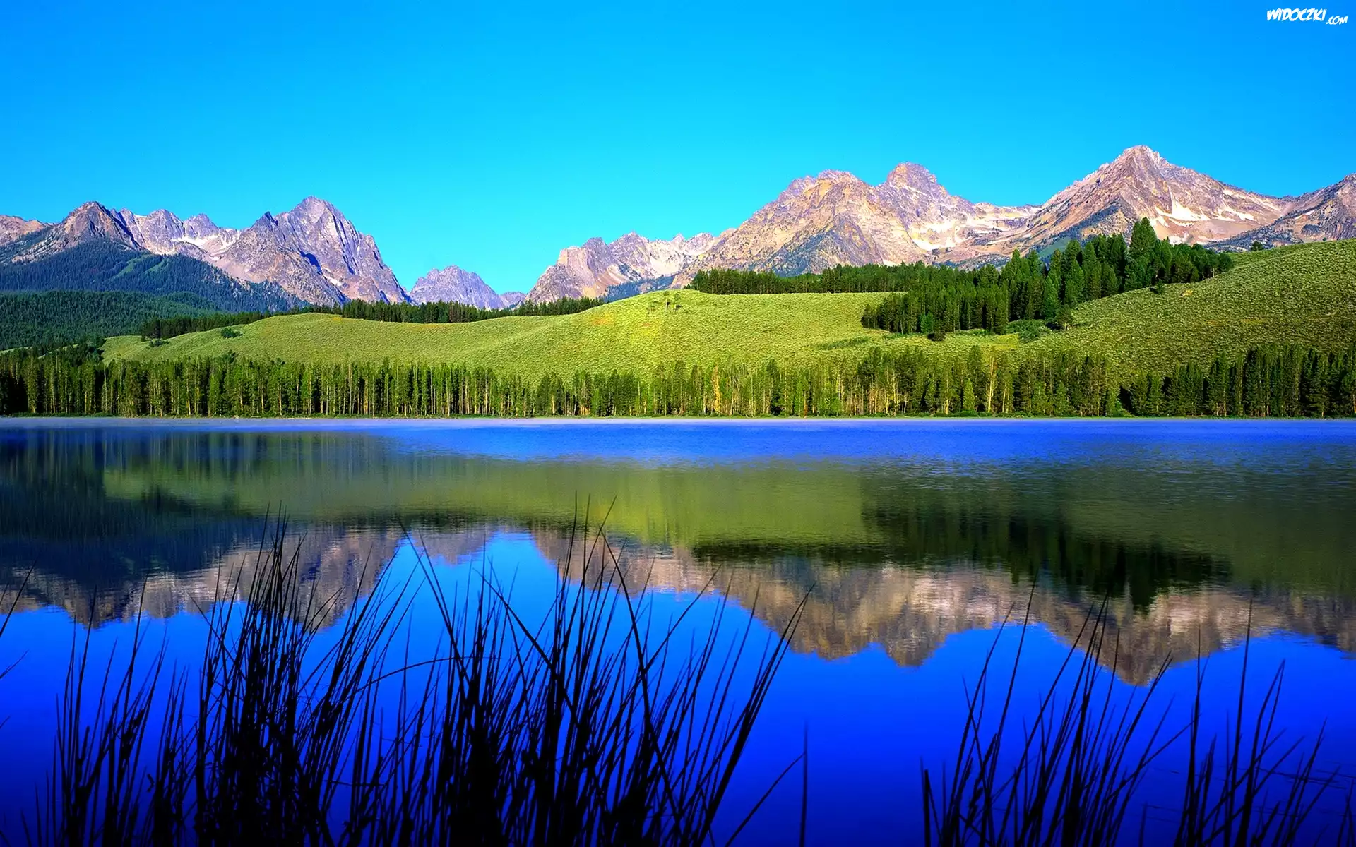 Zdjęcia, Jezioro, Góry, Odbicie, Porośnięte, Brzegi