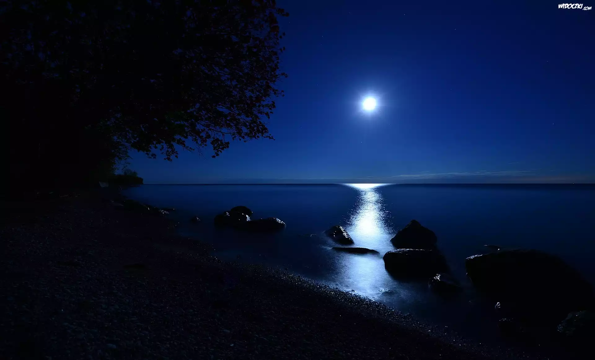 Zdjęcia, Jezioro, Noc, Poświata, Księżyca