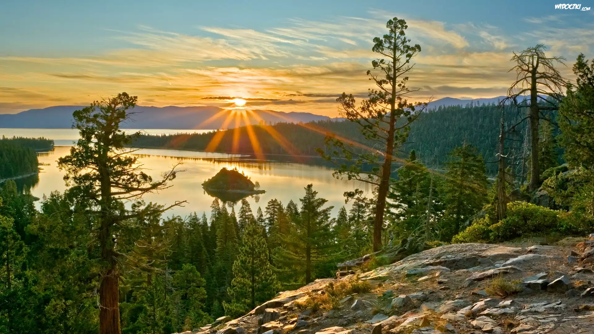 Jezioro, Las, Promienie, Słońca