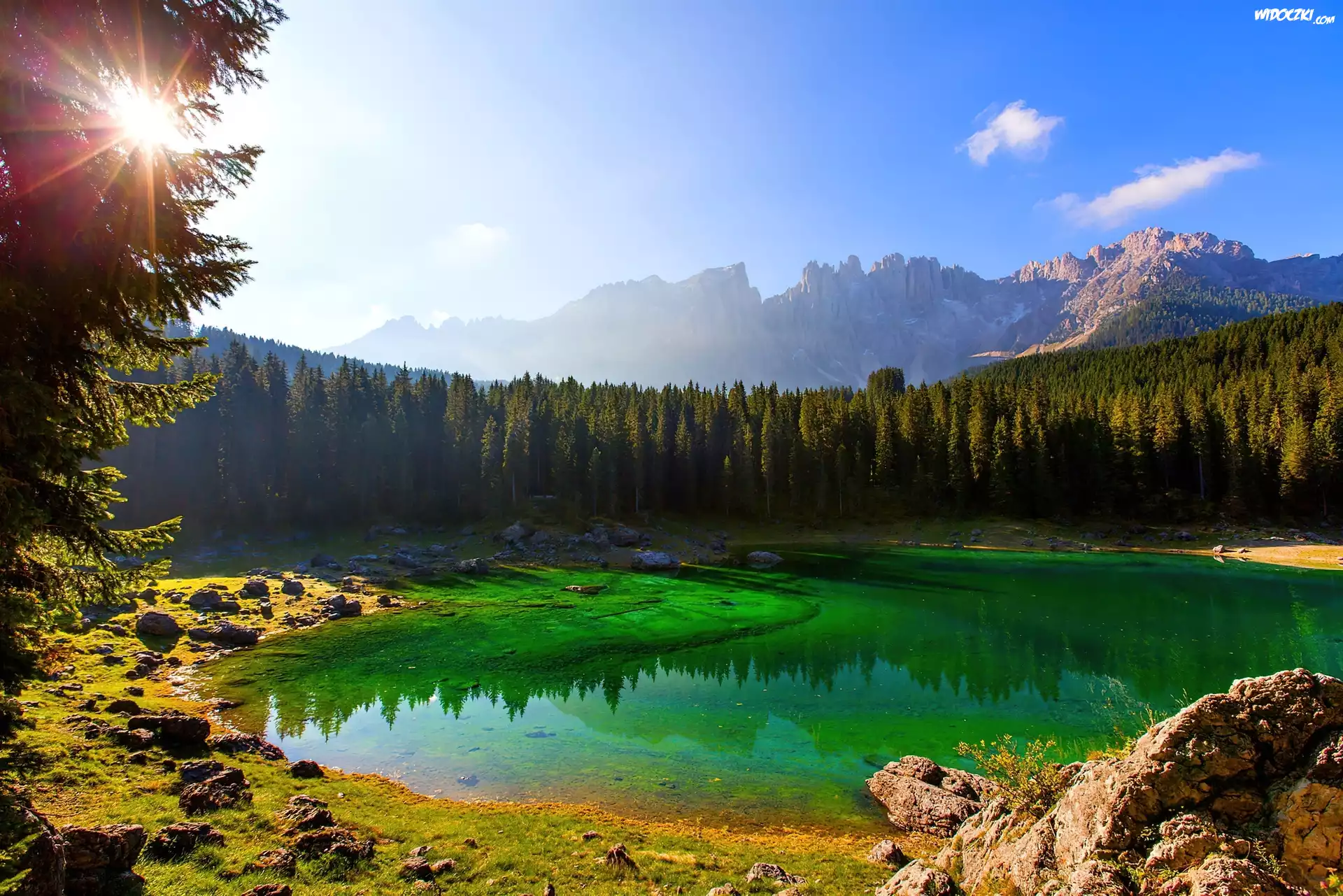 Zdjęcia, Jezioro, Góry, Lasy, Promienie Słońca