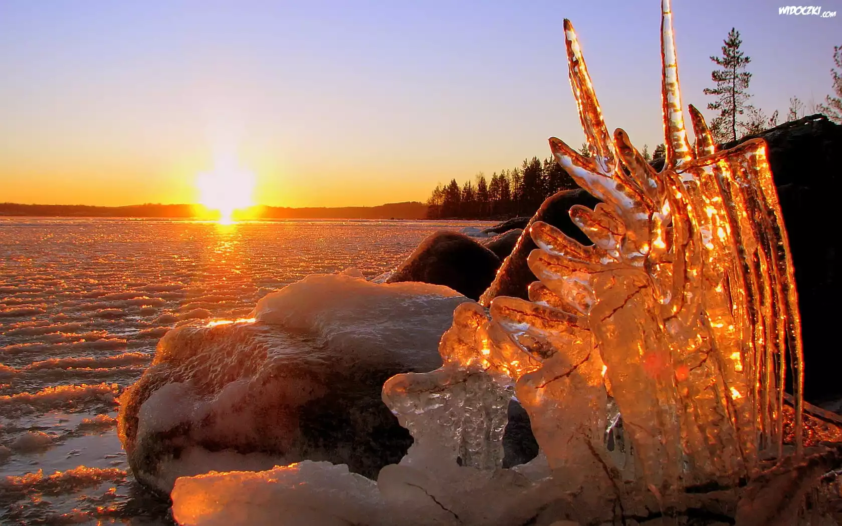 Zdjęcia, Jezioro, Bryła, Lodu, Promienie, Słońca