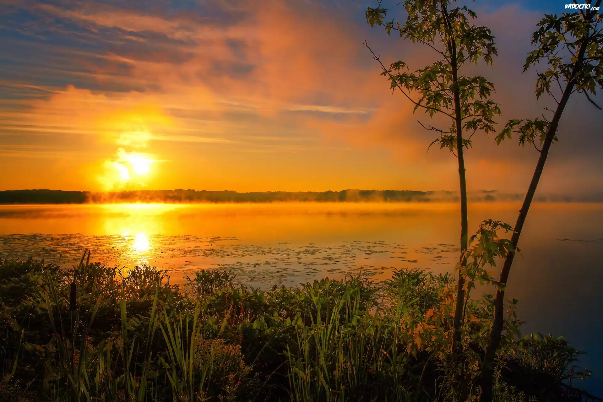 Jezioro, Mgła, Promienie, Słońca